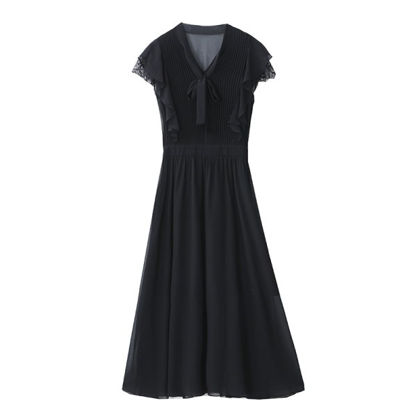 RM5845#夏季新款黑色设计感蕾丝雪纺连衣裙女气质轻熟风无袖长裙