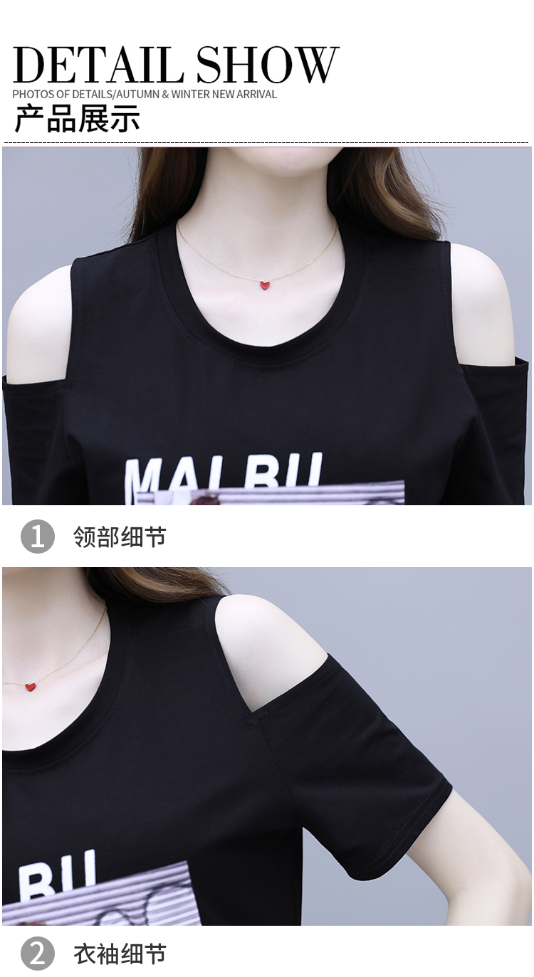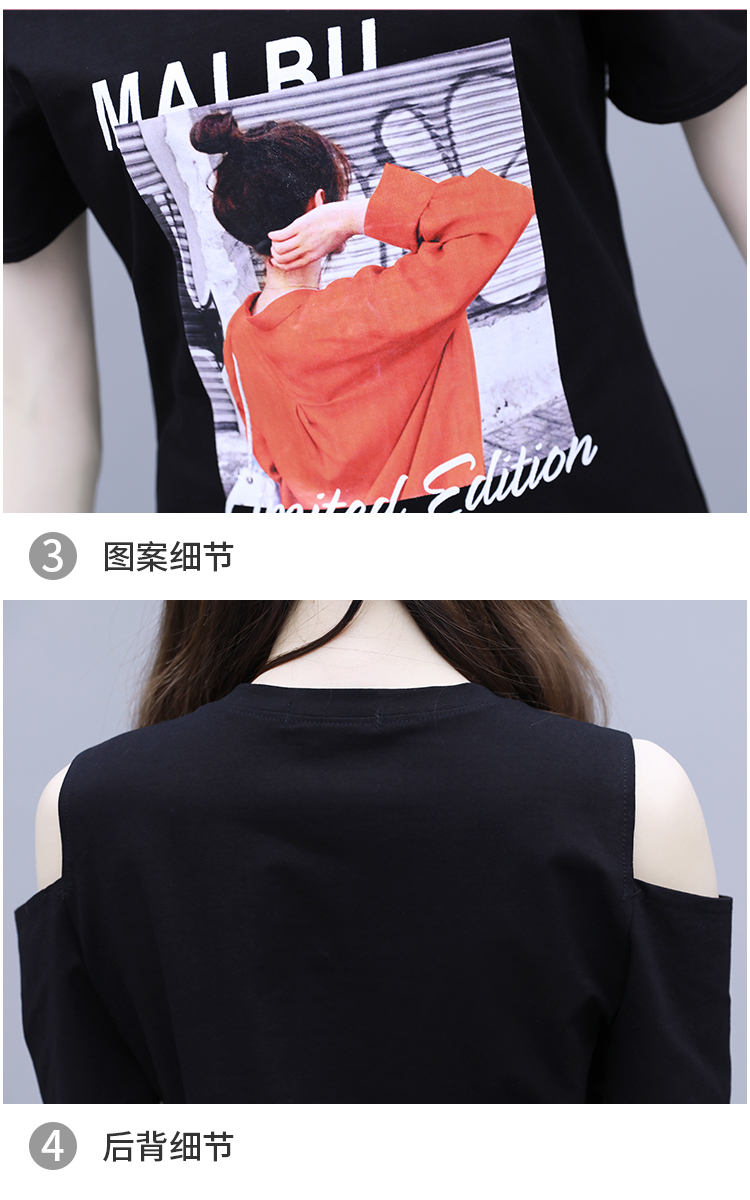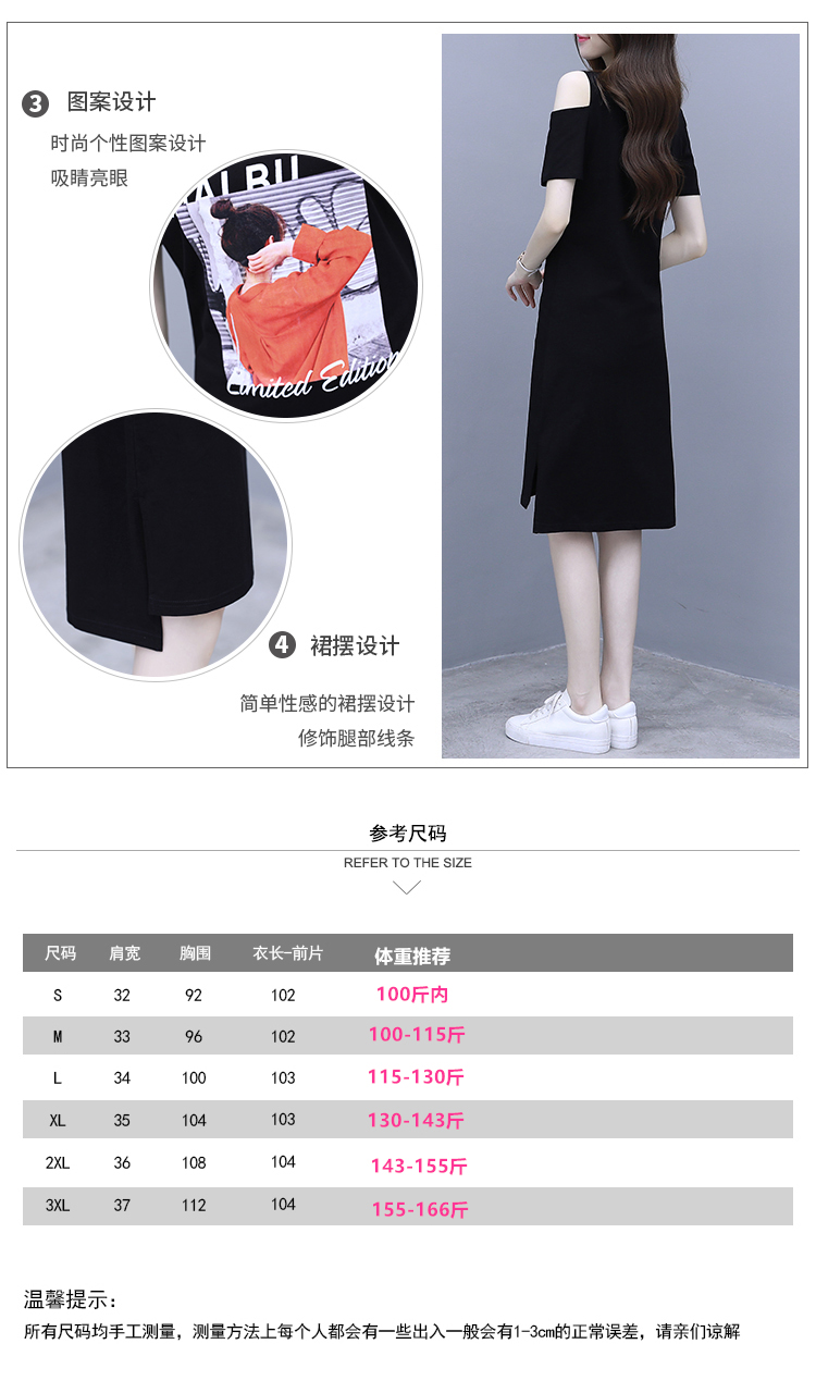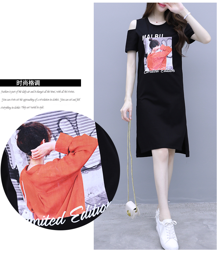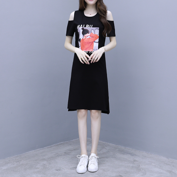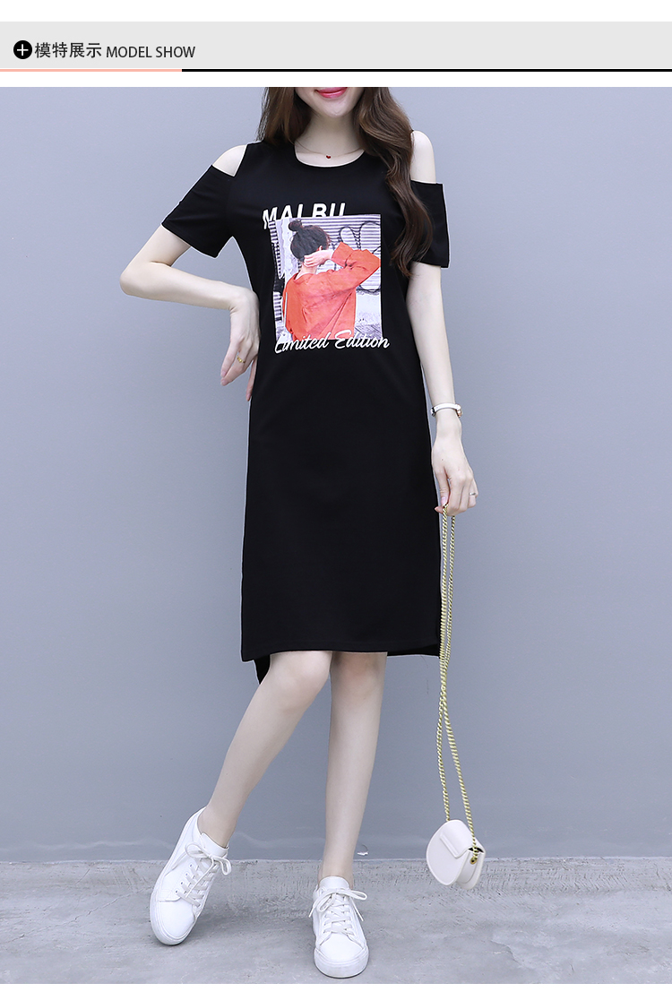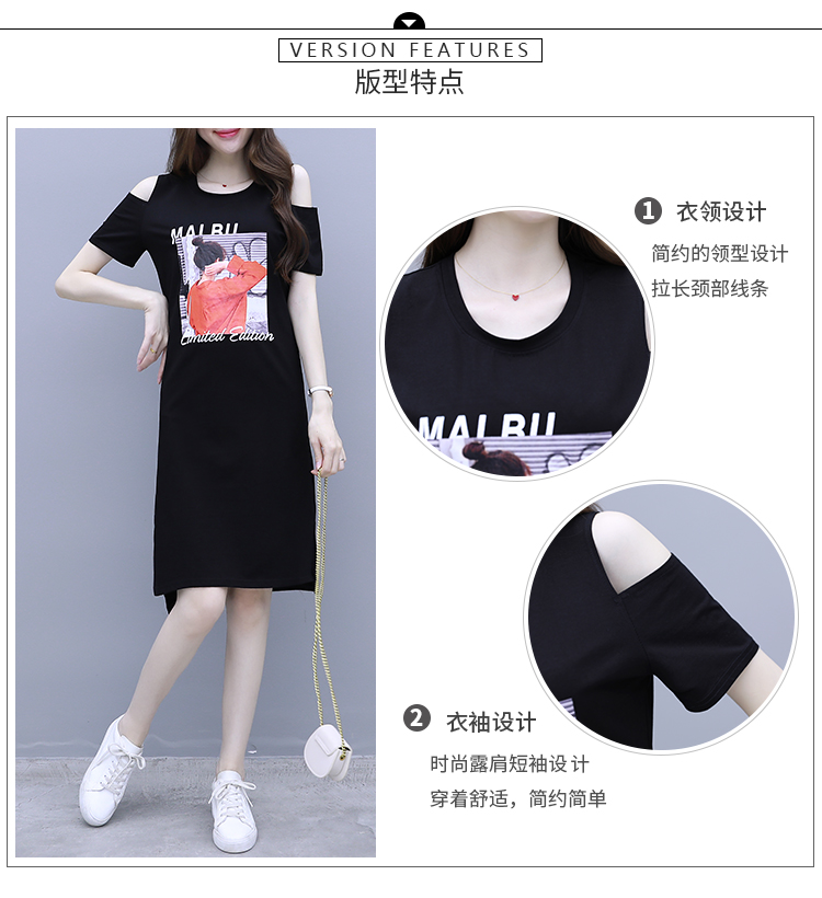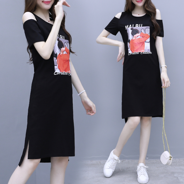 RM5855#中长款T恤裙大码女装大码连衣裙夏款黑色不掉毛露肩连衣裙