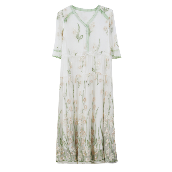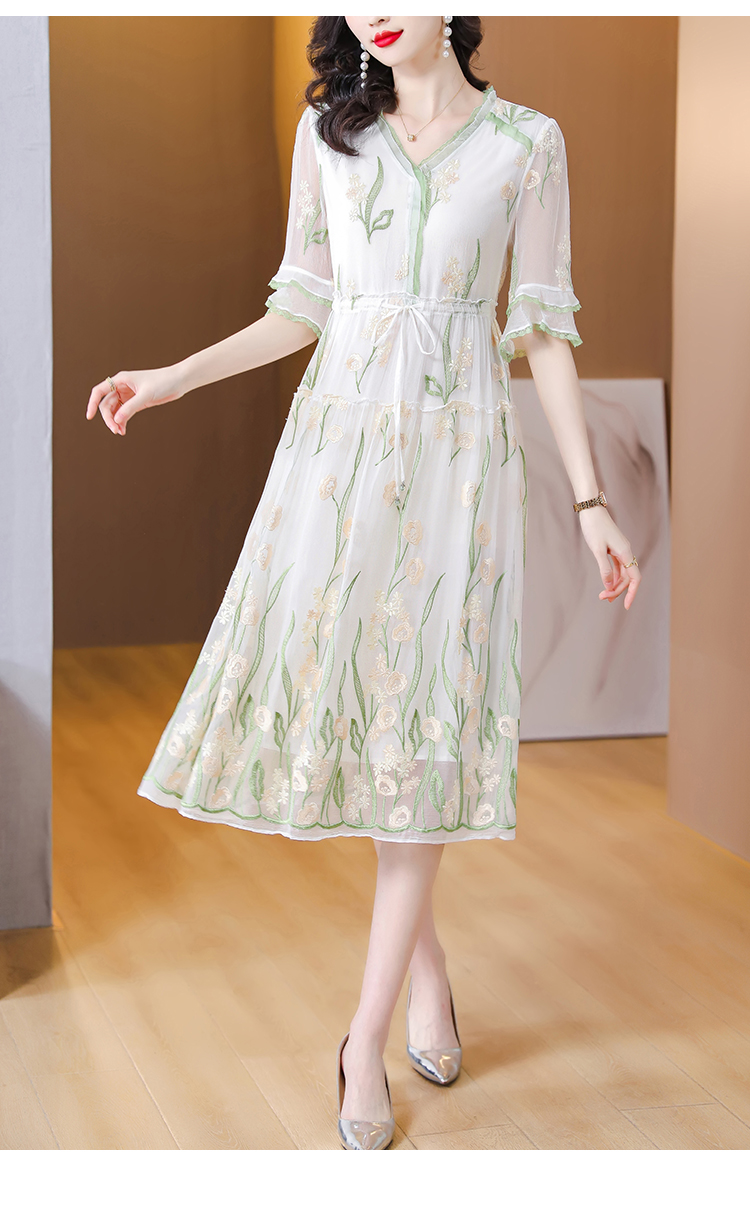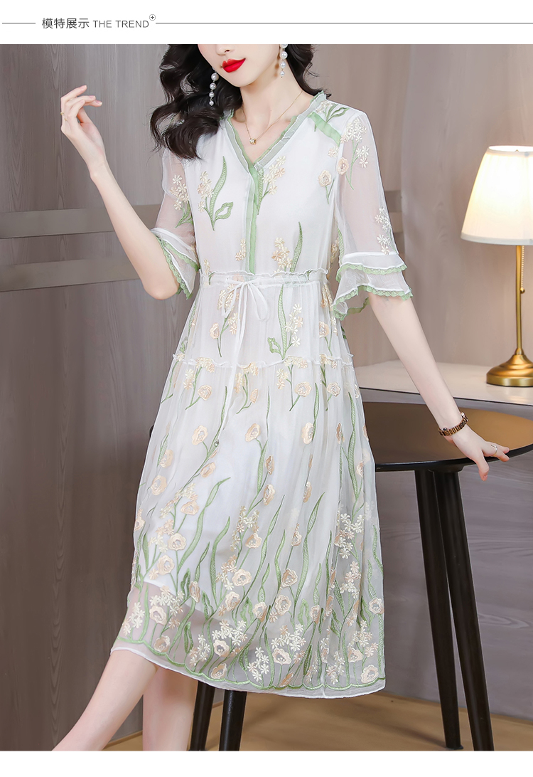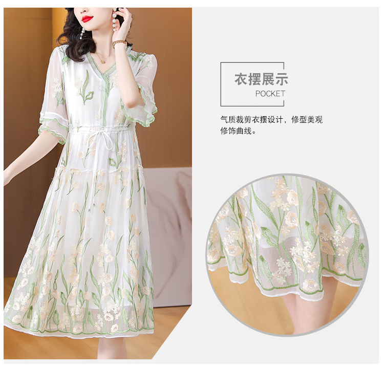 RM5741#年轻款桑蚕丝连衣裙女春夏2023年新款高端绣花真丝气质中长款裙子