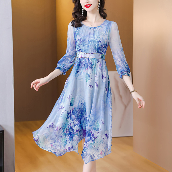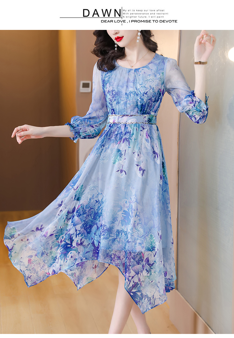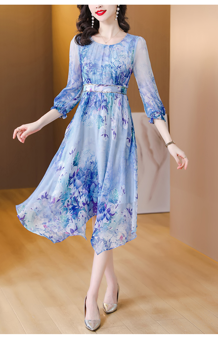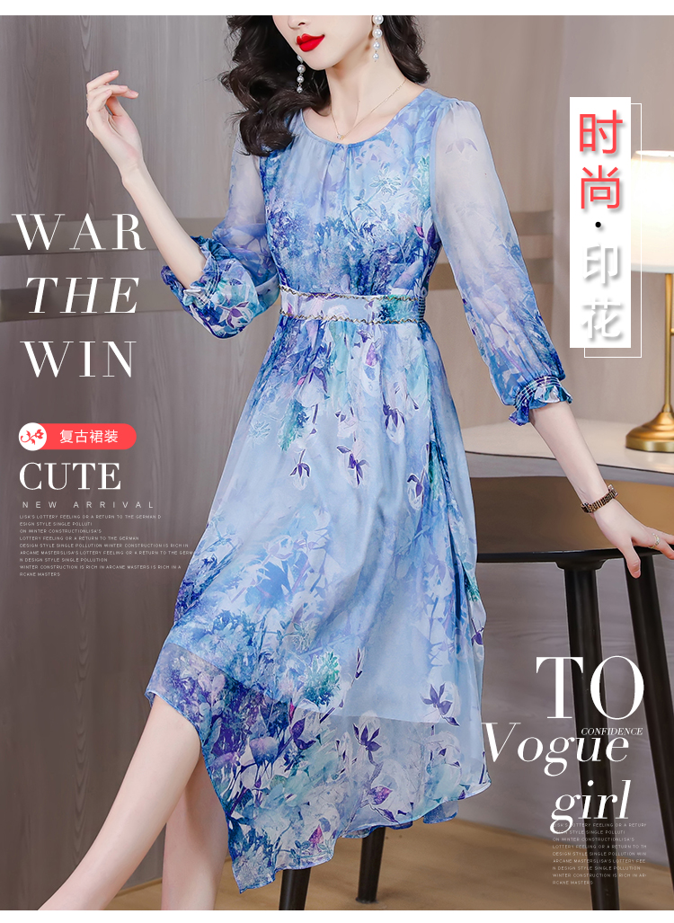 RM5747#真丝连衣裙2023春季新款收腰气质名媛法式碎花裙高端显瘦桑蚕丝裙