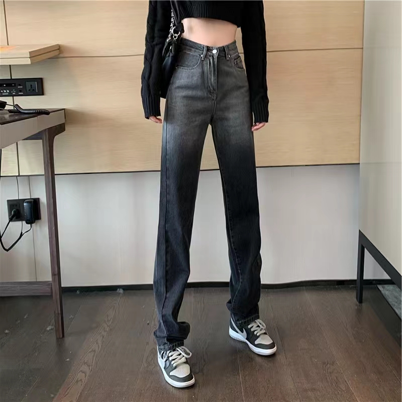 RY1523#春季新款复古渐变高腰阔腿显瘦牛仔裤直筒拖地裤子爆款