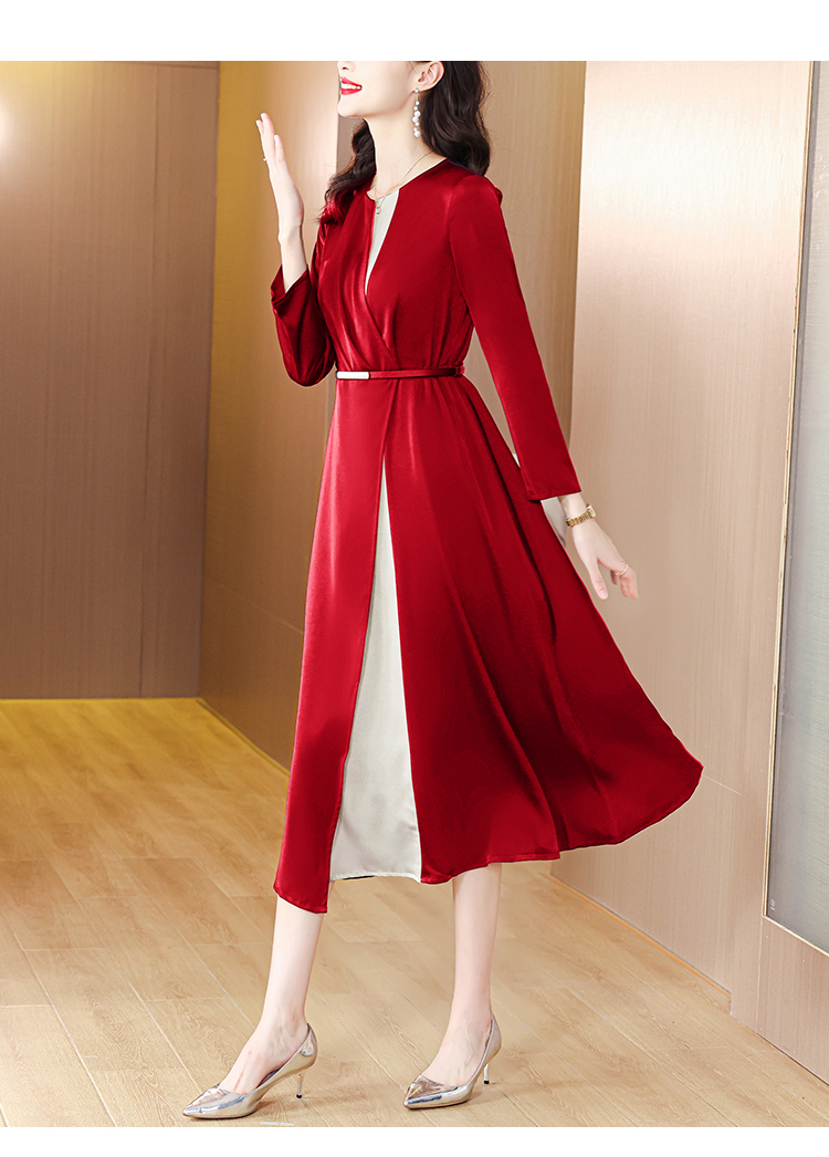 RM9114#高端款拼接连衣裙2023秋季新款高级感气质洋气显瘦减龄大摆裙子