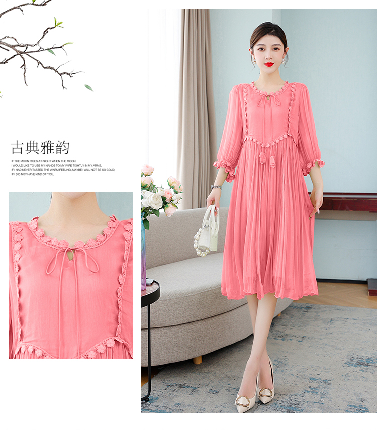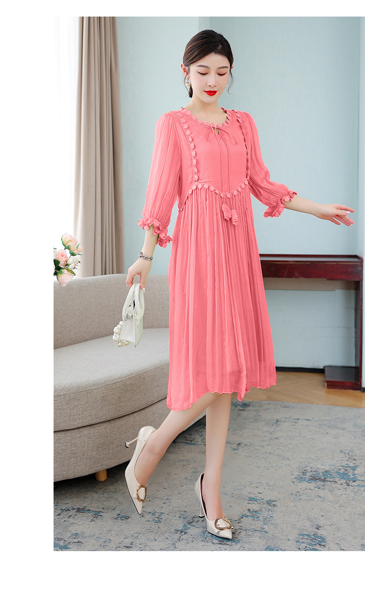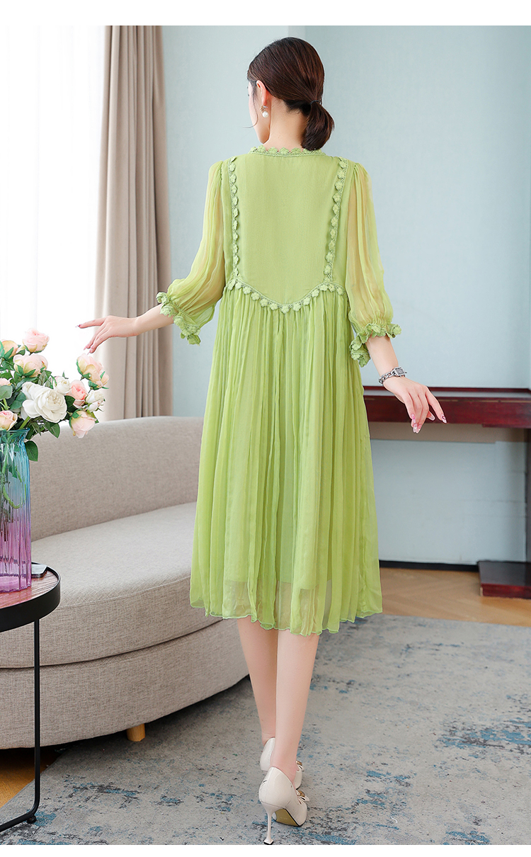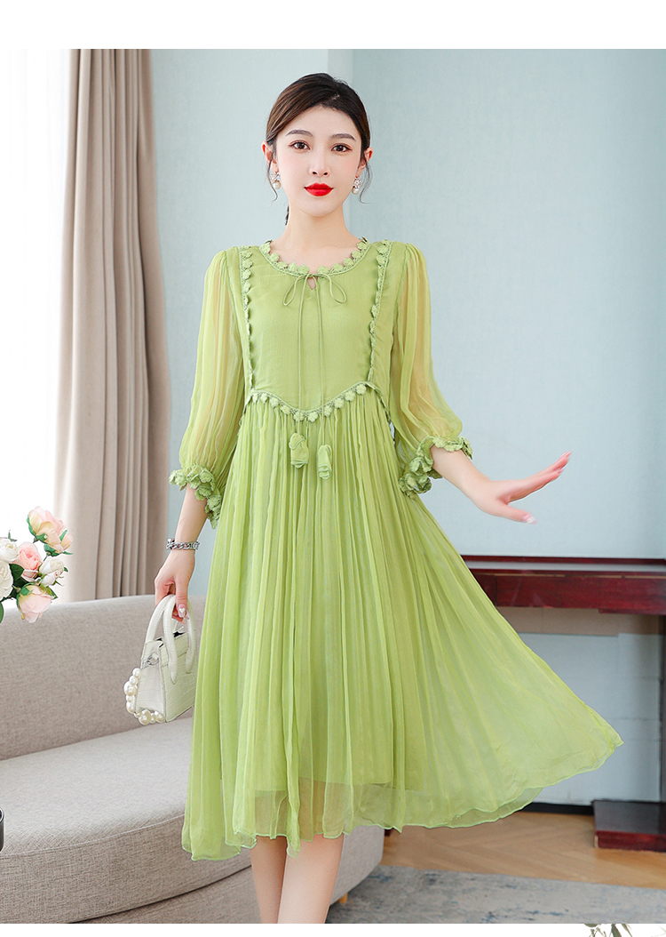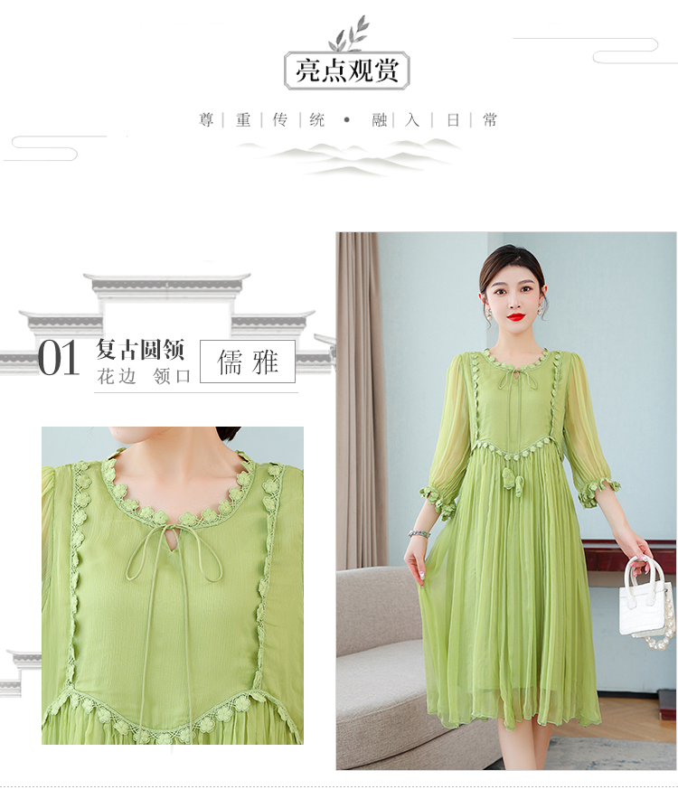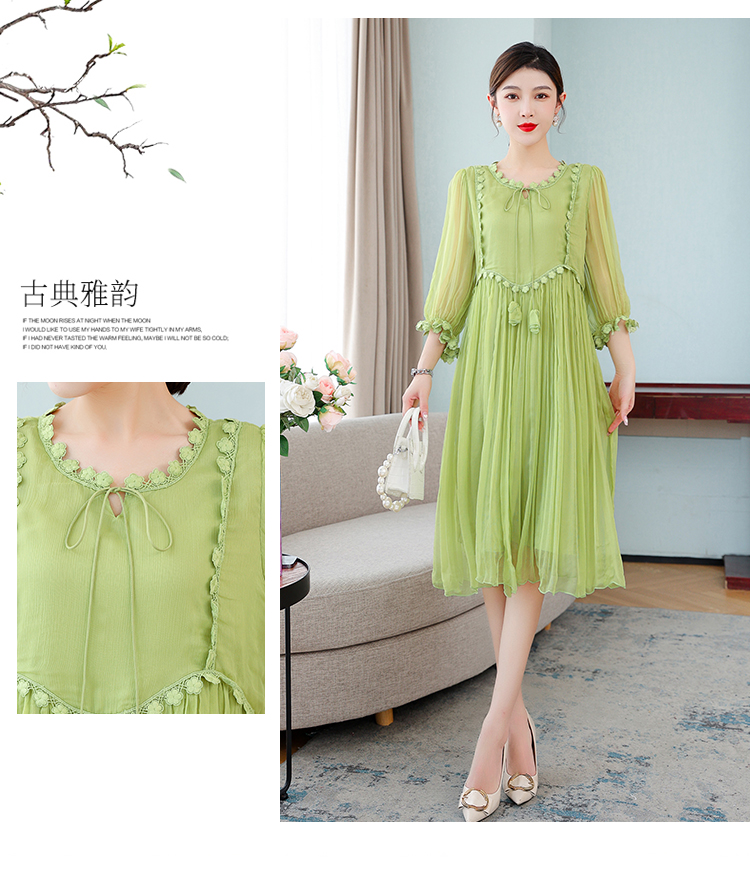 RM9123#真丝连衣裙女2023夏季新款宽松气质中长款桑蚕丝绣花拼接A字裙子