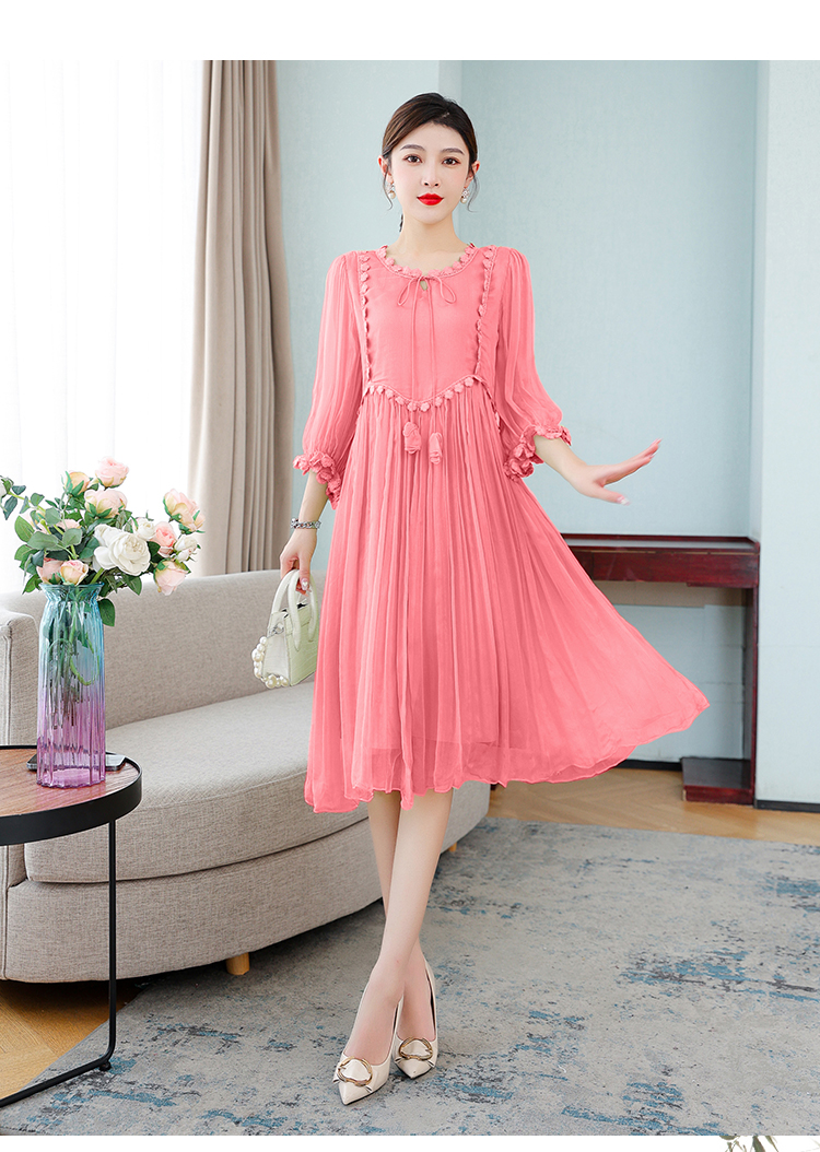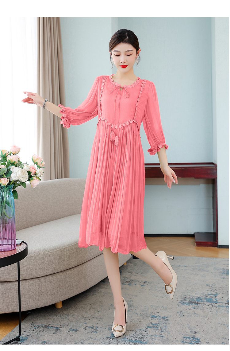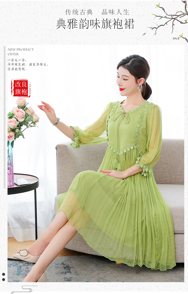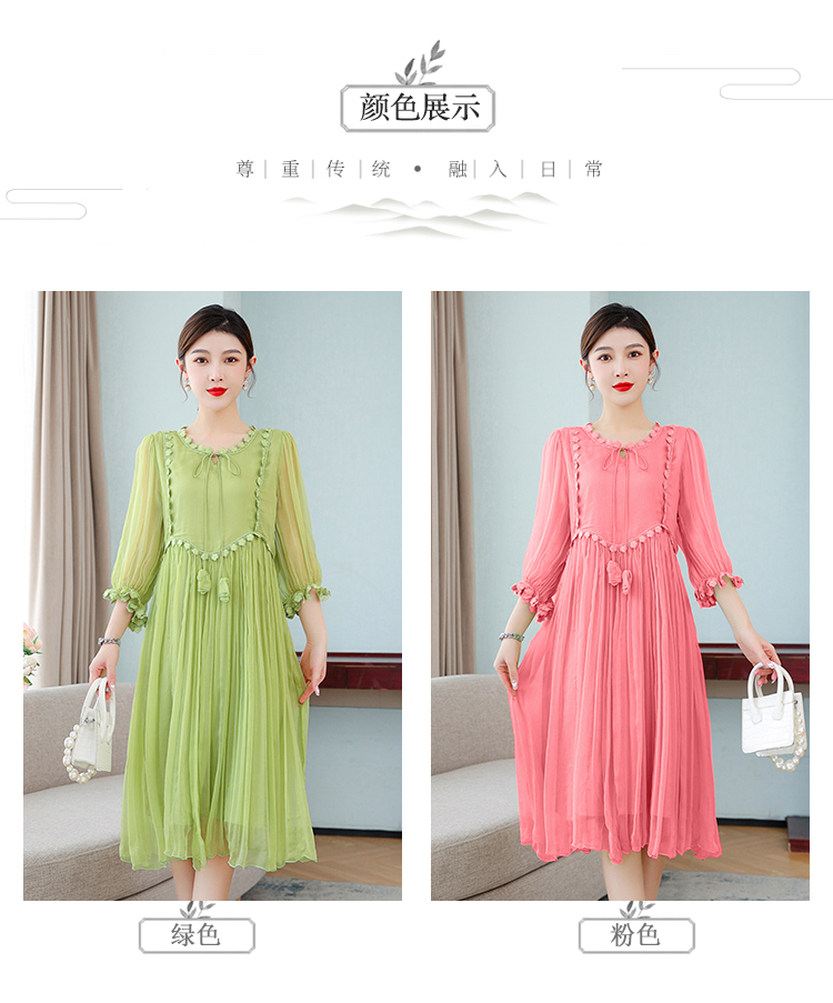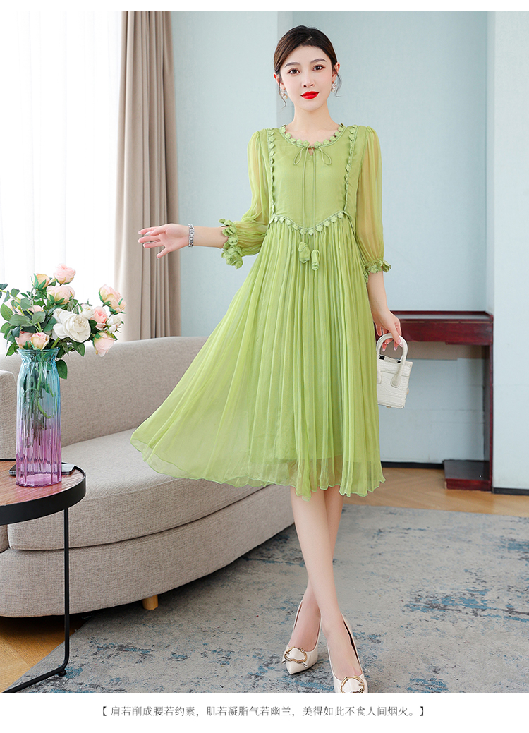 RM9123#真丝连衣裙女2023夏季新款宽松气质中长款桑蚕丝绣花拼接A字裙子