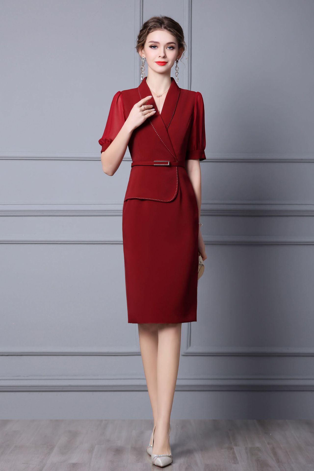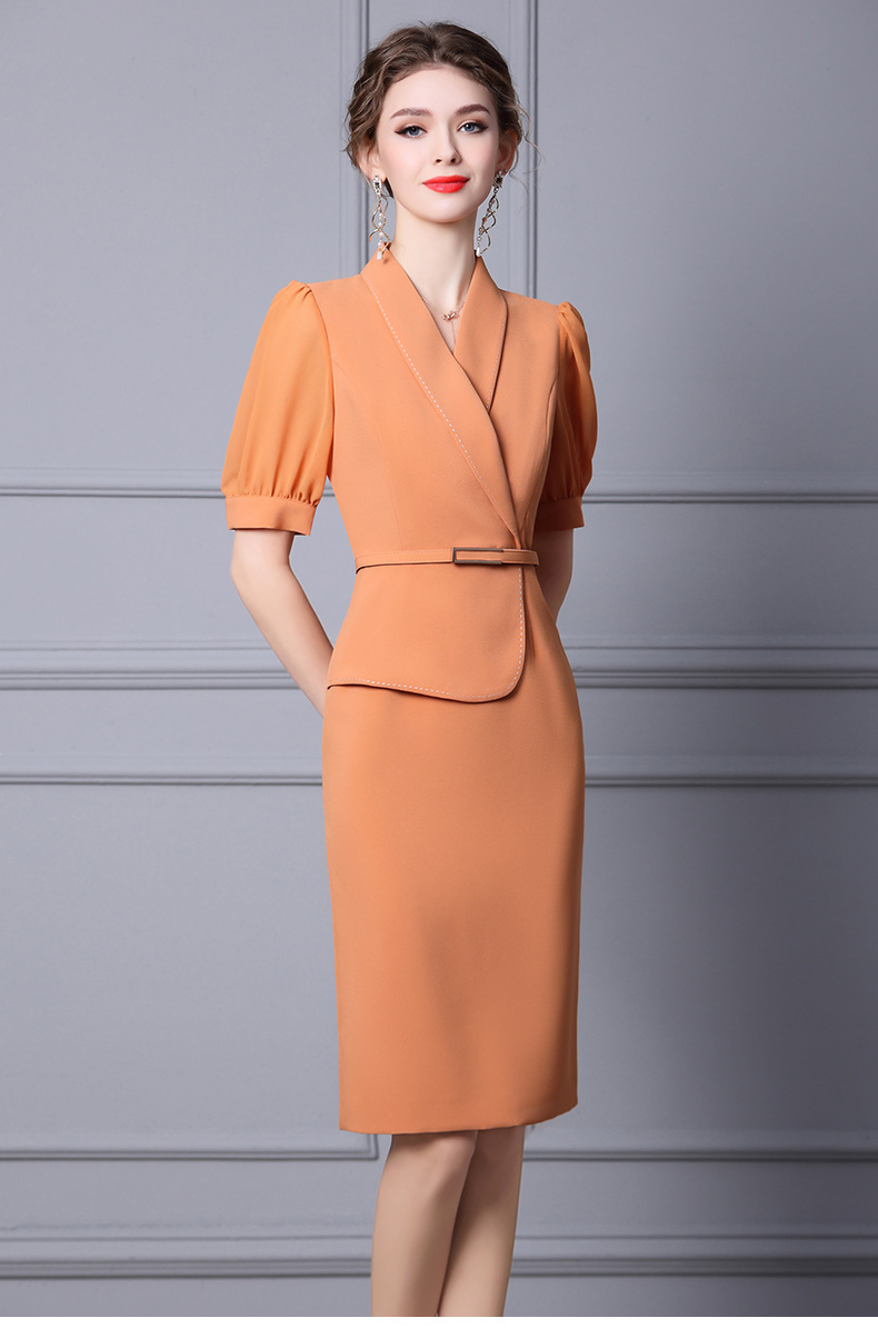 RM9126#法式高级感连衣裙女短袖夏装新款轻熟气质V领修身别致裙子2023