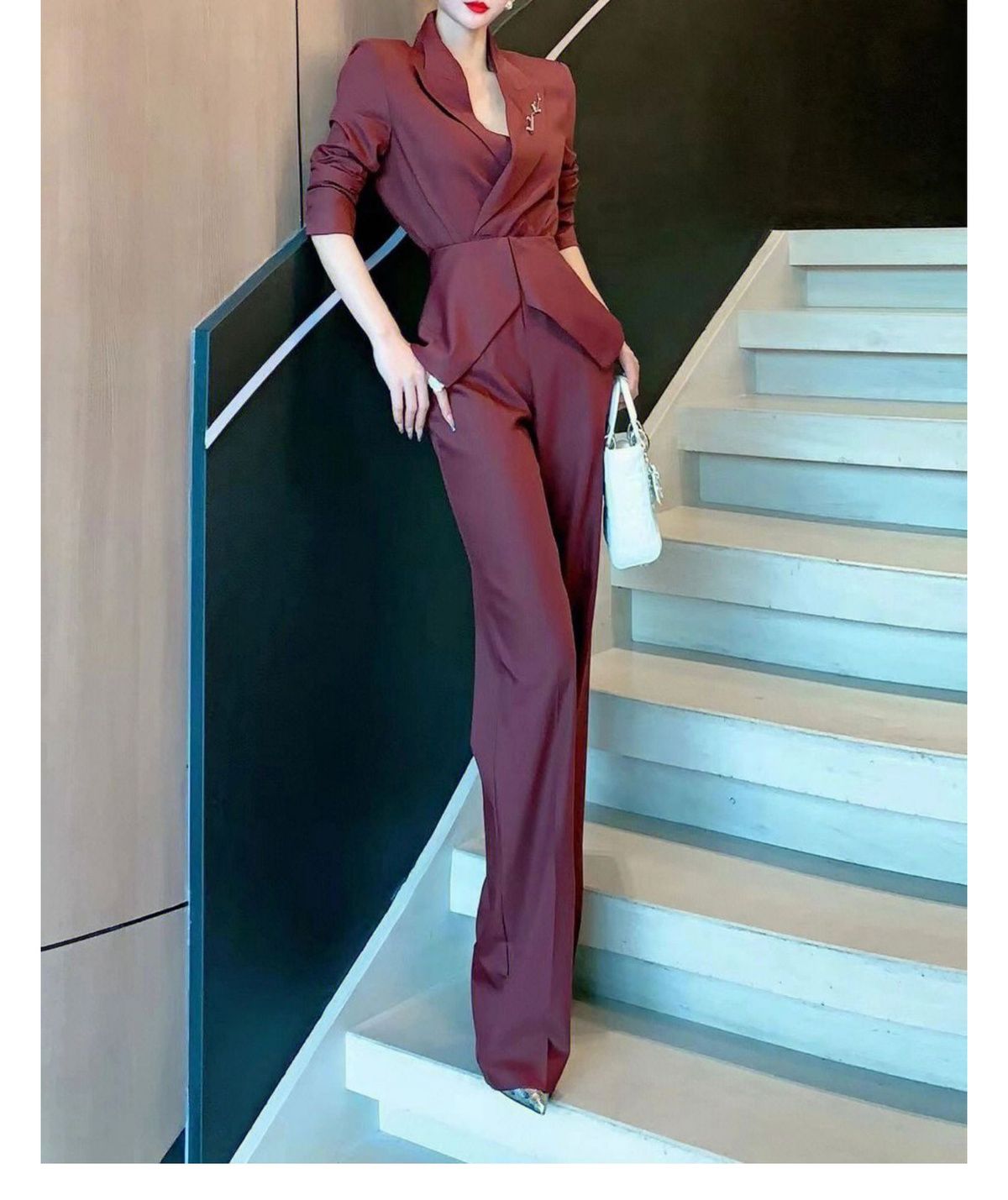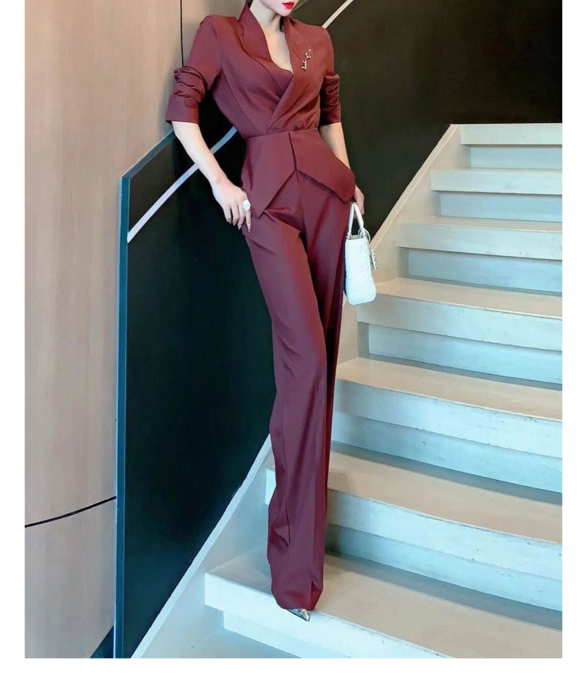 RM9132#高级感御姐气质名媛褶皱修身收腰西装套装直筒长裤两件套