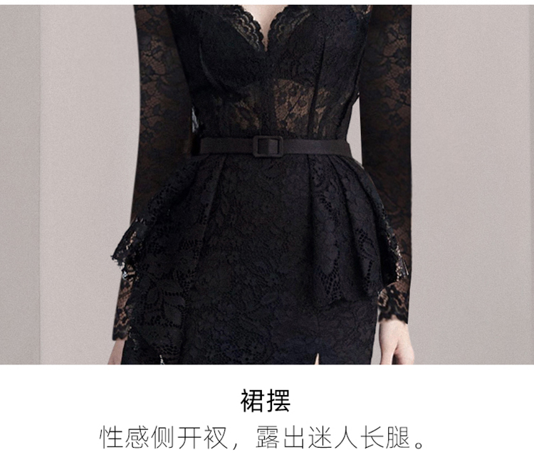 RM9637#收腰小黑裙显瘦气质裙子女神范蕾丝高端大牌名媛黑色连衣裙秋