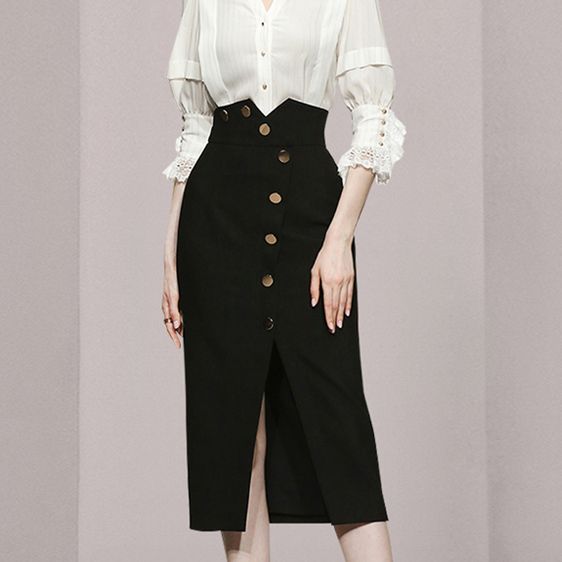 RM9638#七分袖衬衫女士高端黑色包臀裙半身职业套装裙御姐轻熟风