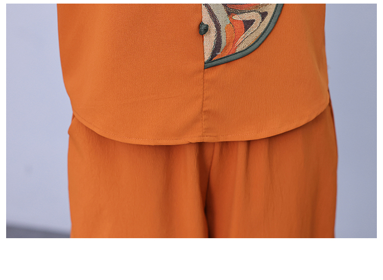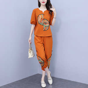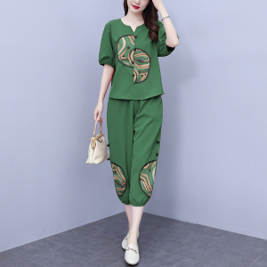 RM10461#大码女装年轻妈妈夏装短袖套装新款盘扣时尚显瘦两件套