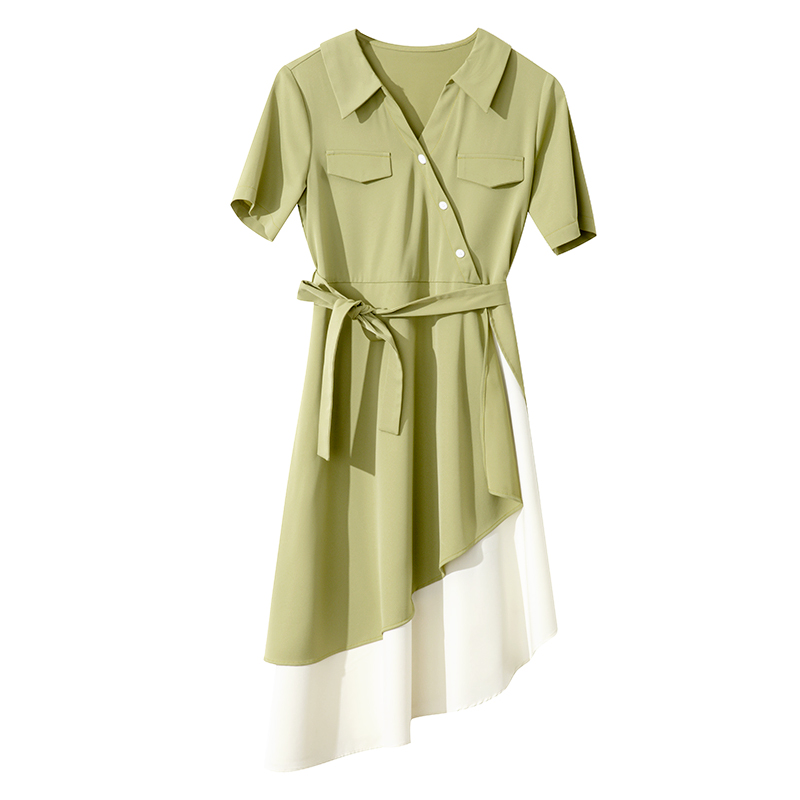 RM11668#牛油果绿高级感不规则连衣裙2023夏季新款设计小众气质收腰衬衫裙