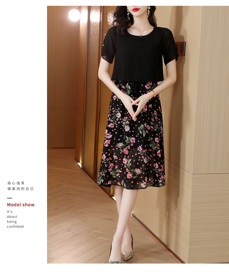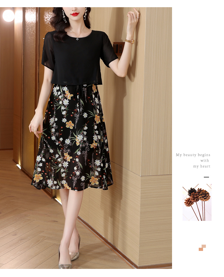 RM11678#假两件连衣裙2023夏季新款中老年妈妈装气质时尚显瘦雪纺裙