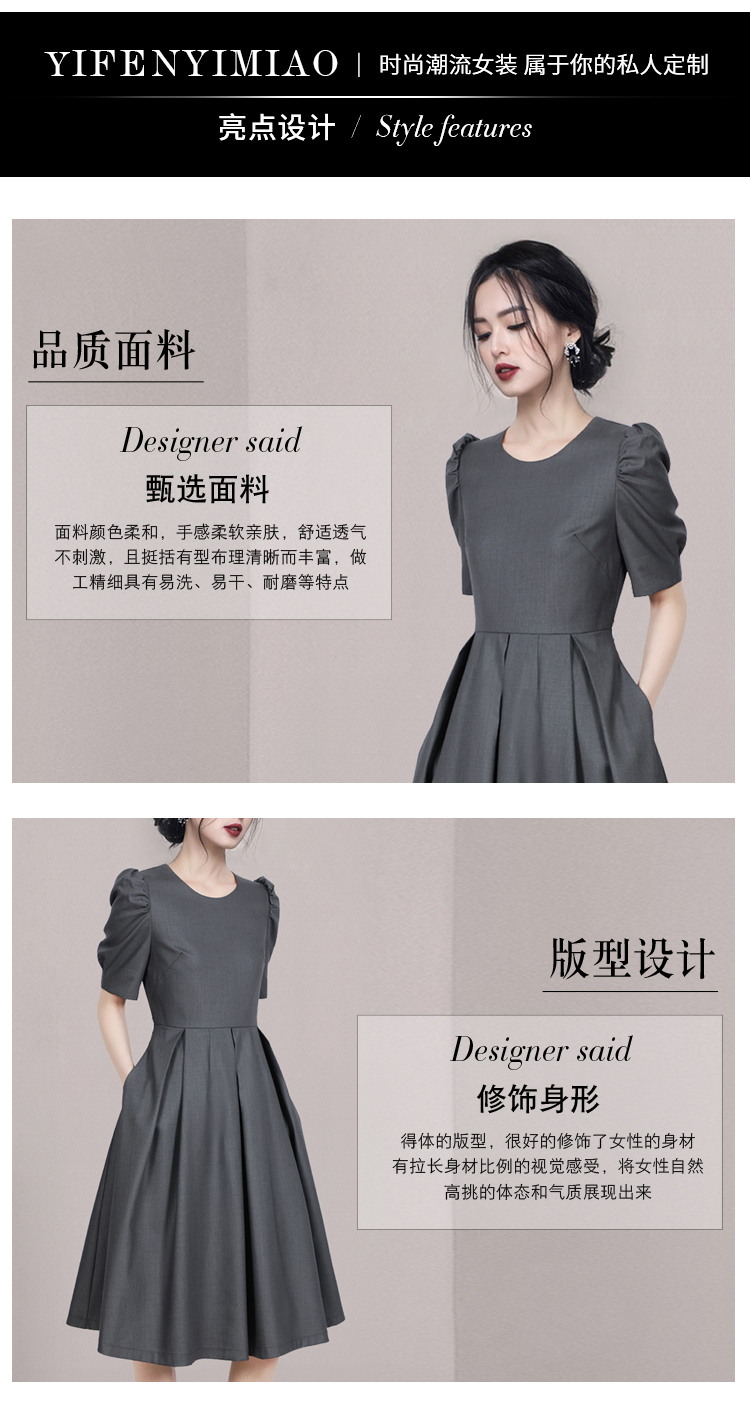 RM11712#夏季通勤时尚泡泡袖连衣裙女中长款2023年新款收腰气质大摆裙