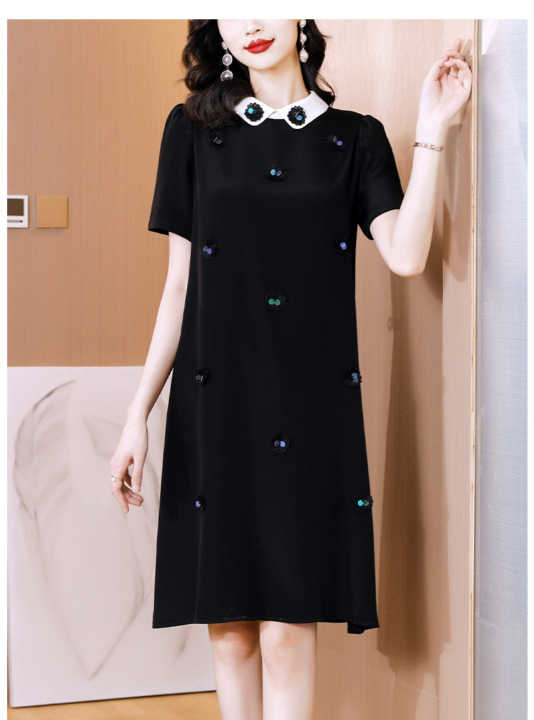 RM11741#小个子真丝连衣裙高级感气质中年女装时尚2023新款短袖桑蚕丝裙子