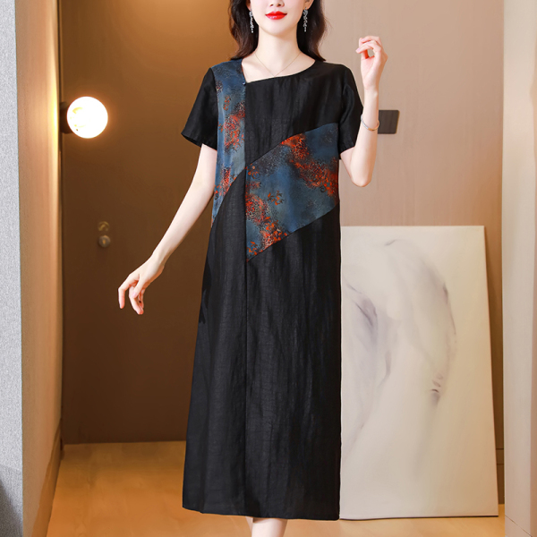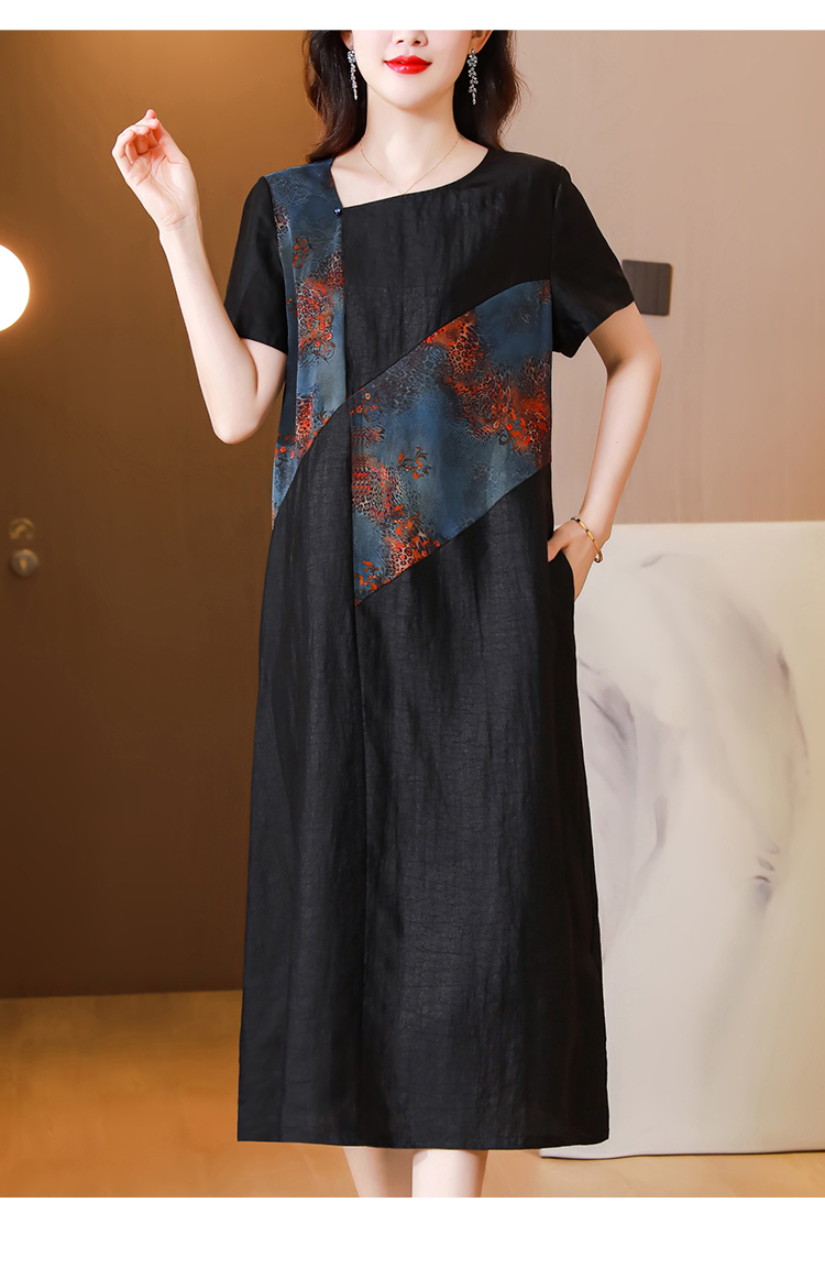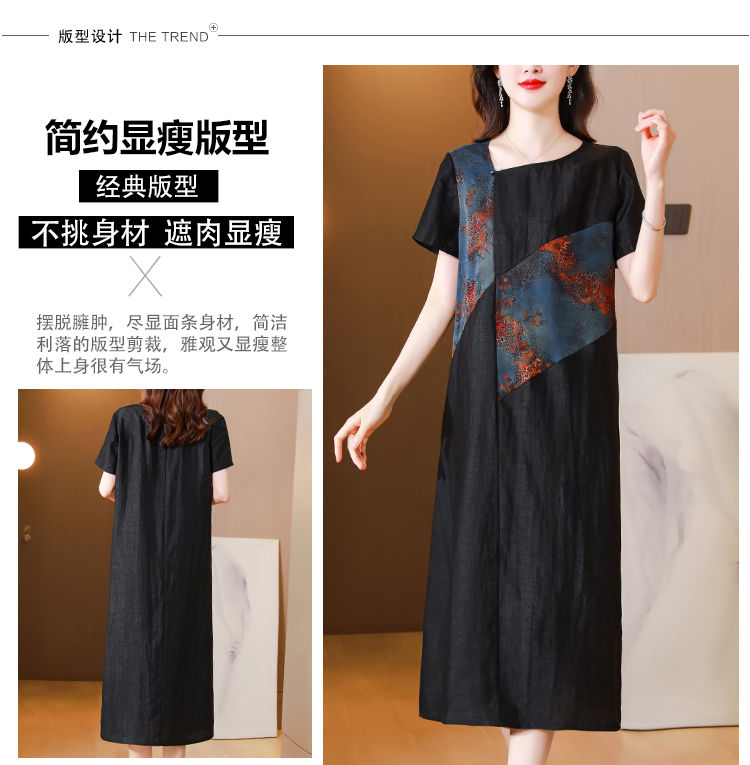 RM11753#国风复古贵夫人高端品牌真丝桑蚕丝拼接龟裂纹香云纱连衣裙2023年
