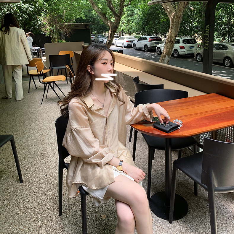 RM11777#设计感小众防晒天丝衬衫女宽松慵懒风百搭衬衣薄款上衣