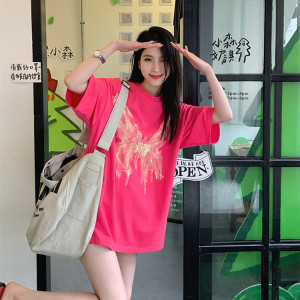 RM12050#新款100%棉精梳纯棉 印花夏装短袖T恤女宽松韩版