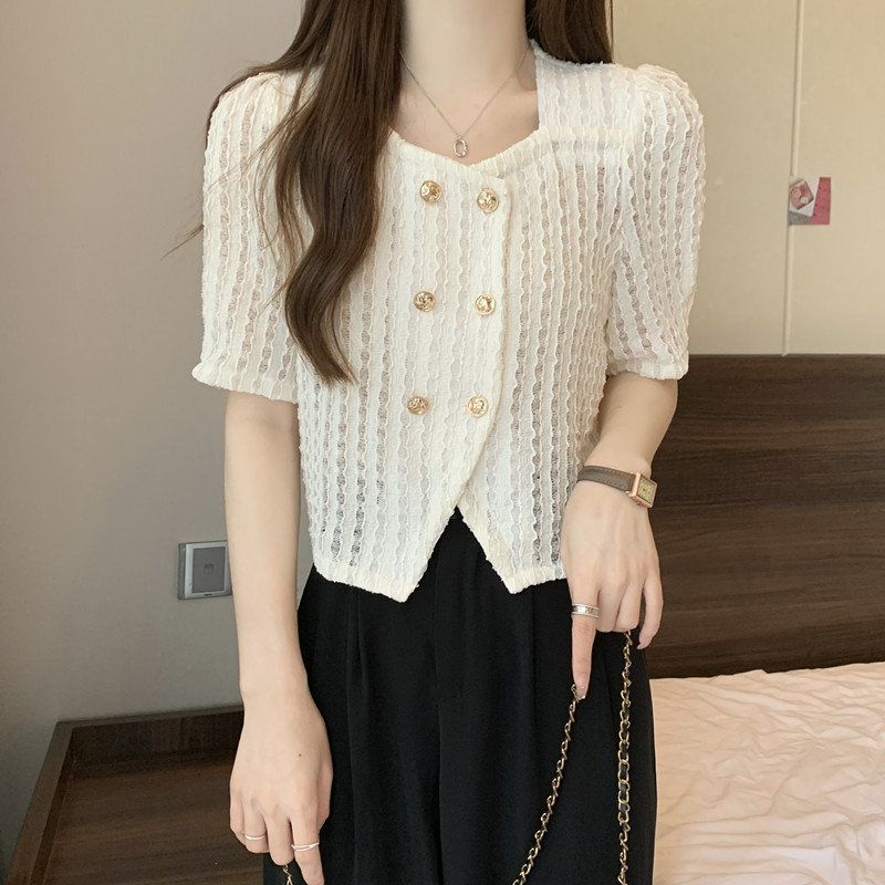 RM12791#夏季新款大码胖MM法式复古方领泡泡短袖气质上衣