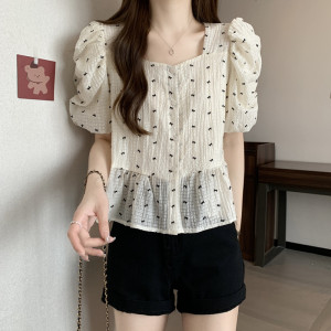 RM12794#夏款大码短袖蝴蝶结印花雪纺衫收腰显瘦别致减龄洋气小衫