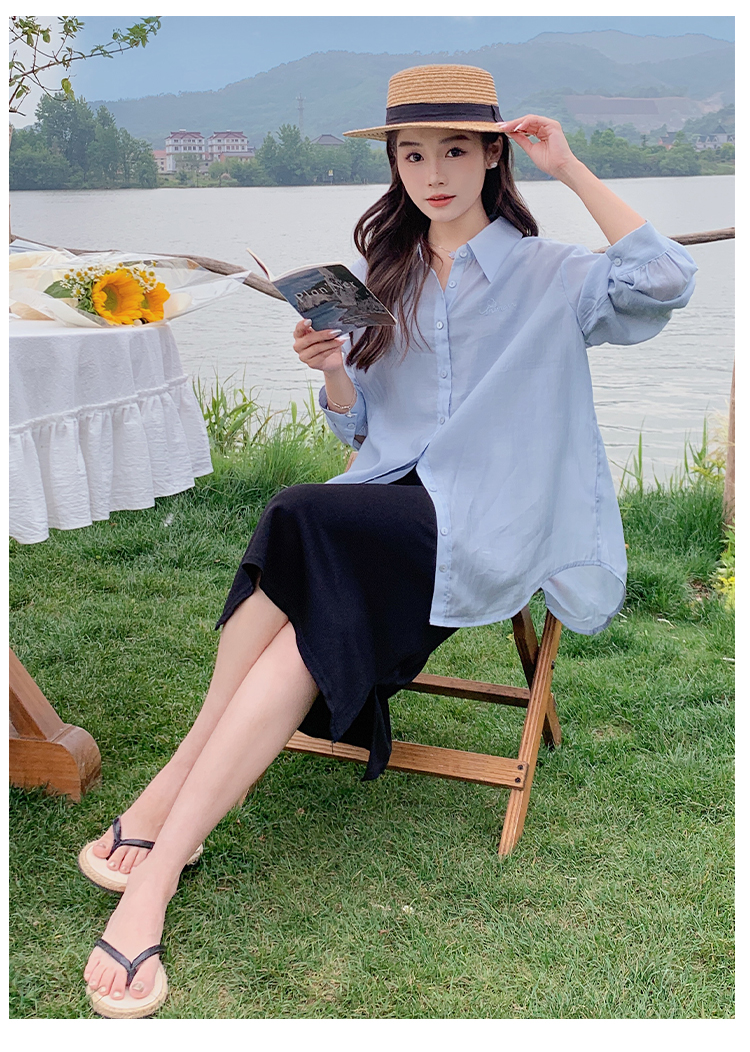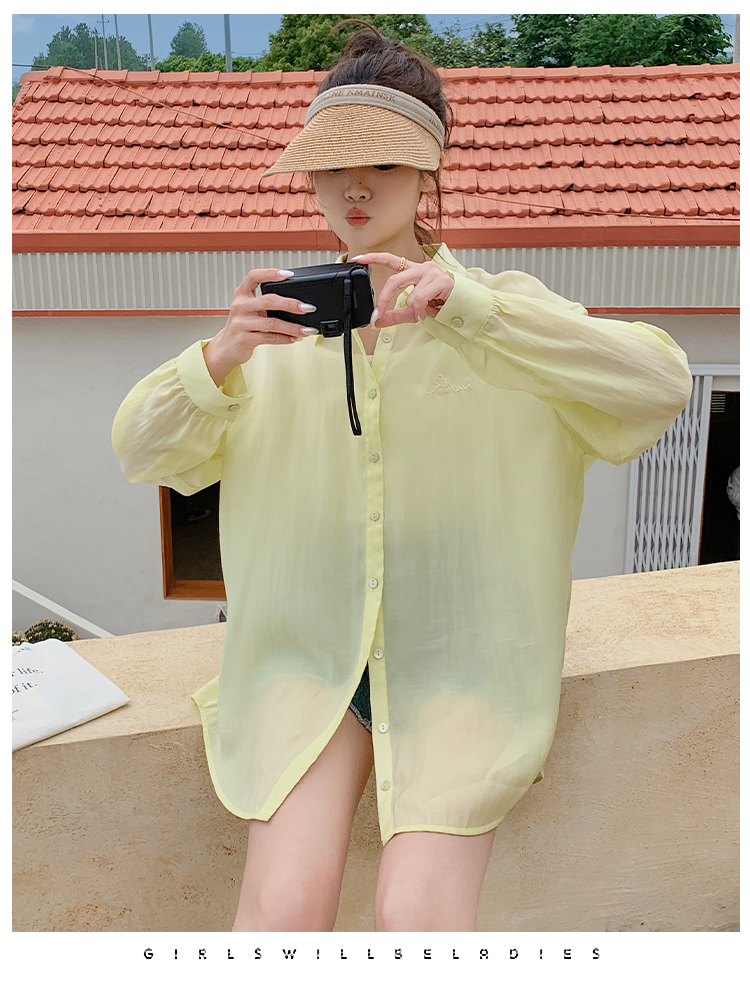 RM13318#李一桐同款莱赛尔天丝开衫防晒衬衣女装2023年夏新款长袖衬衫