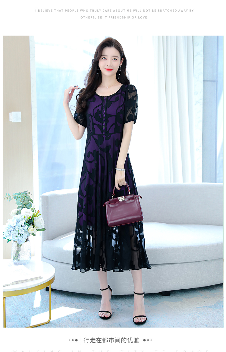 RM24086#剪花黑色连衣裙2023新款圆领收腰修身显瘦高级感超长裙女到脚踝
