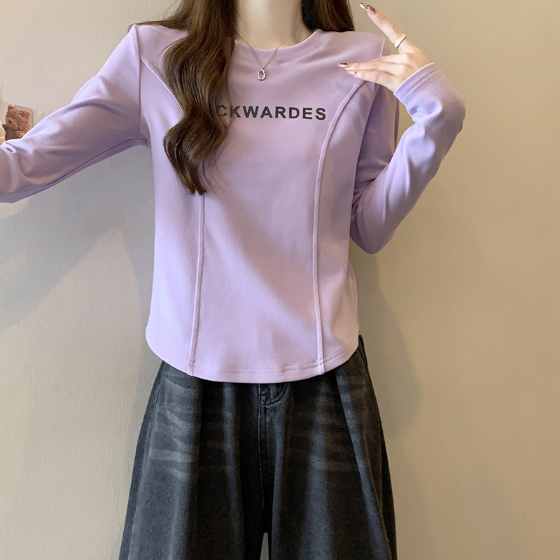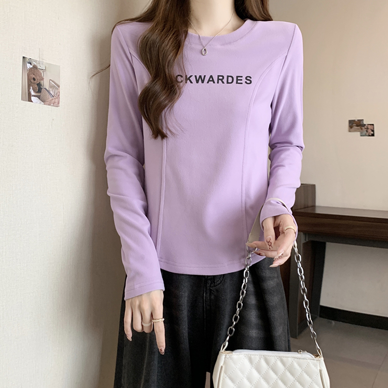 RM29102#新款胖mm百搭修身加厚保暖字母印花正肩打底T恤上衣