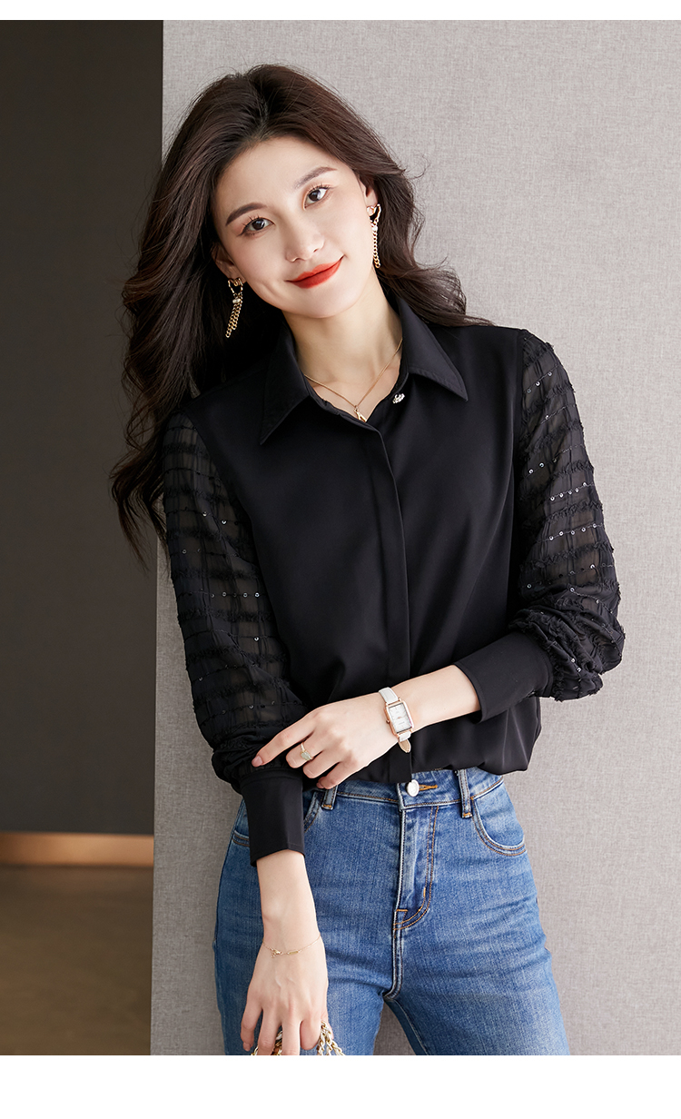 RM29145#法式黑色职业衬衫女2024春装新款设计感小众宽松雪纺衫女