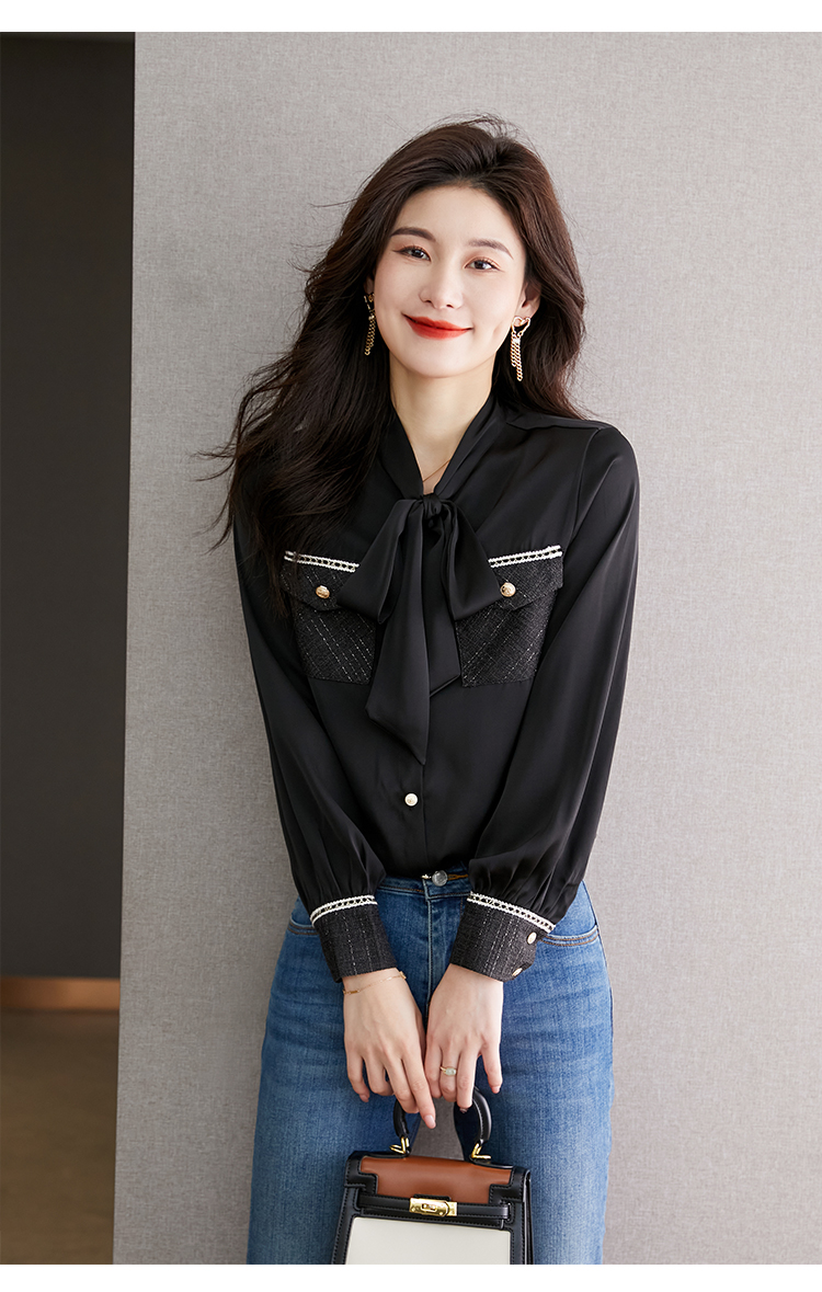 RM29146#黑色系带高级感衬衫女2024春装新款拼接小众口袋别致上衣