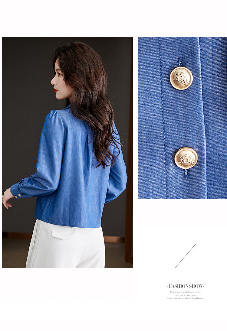 首页 > 女装批发-秋冬款 > 长袖T恤、上衣 > RM29150#法式蓝色牛仔衬衫女2024春装新款港味复古气质高级感小衫