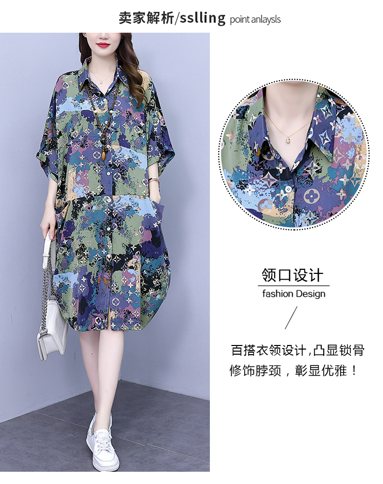 PF951#夏季新款韩版胖MM大码POLO领遮肉衬衫连衣裙中长款休闲宽松型