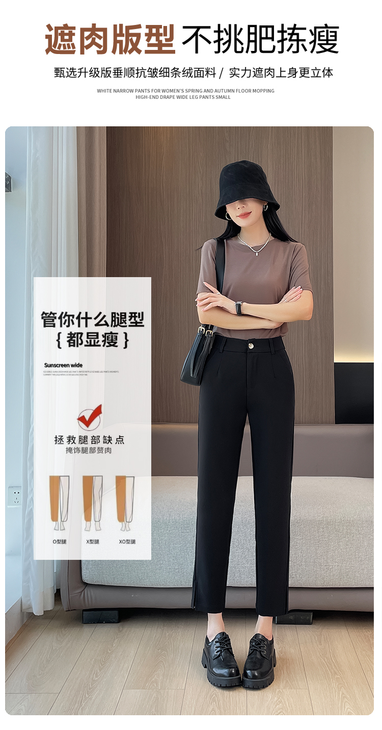 MY481# 春夏直筒裤女九分弹力开叉高腰烟管休闲裤小脚哈伦西装裤女裝貨源服裝批發