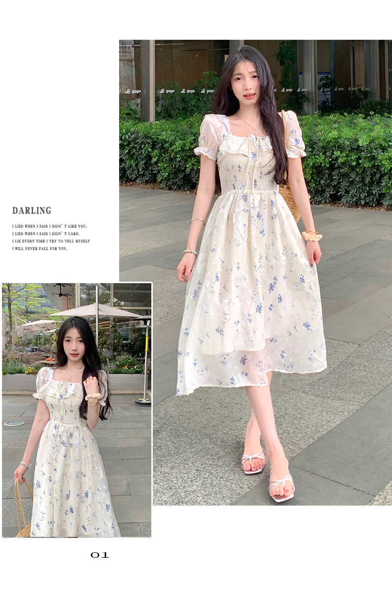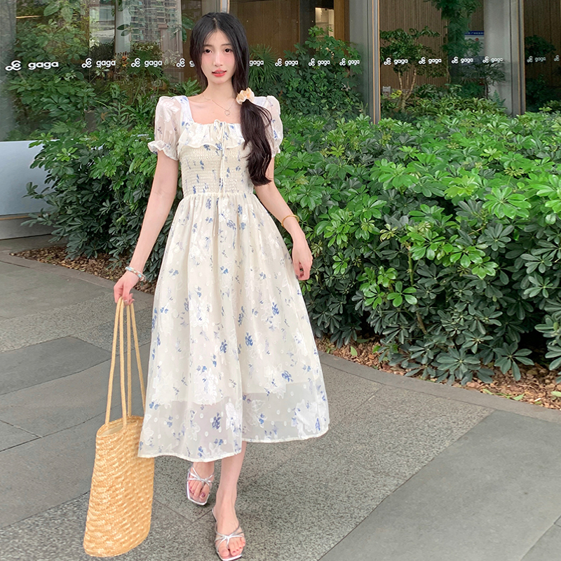 MY3013# 大码女装夏季新款雪纺裙甜美森女显瘦方领短袖碎花连衣裙女裝貨源服裝批發