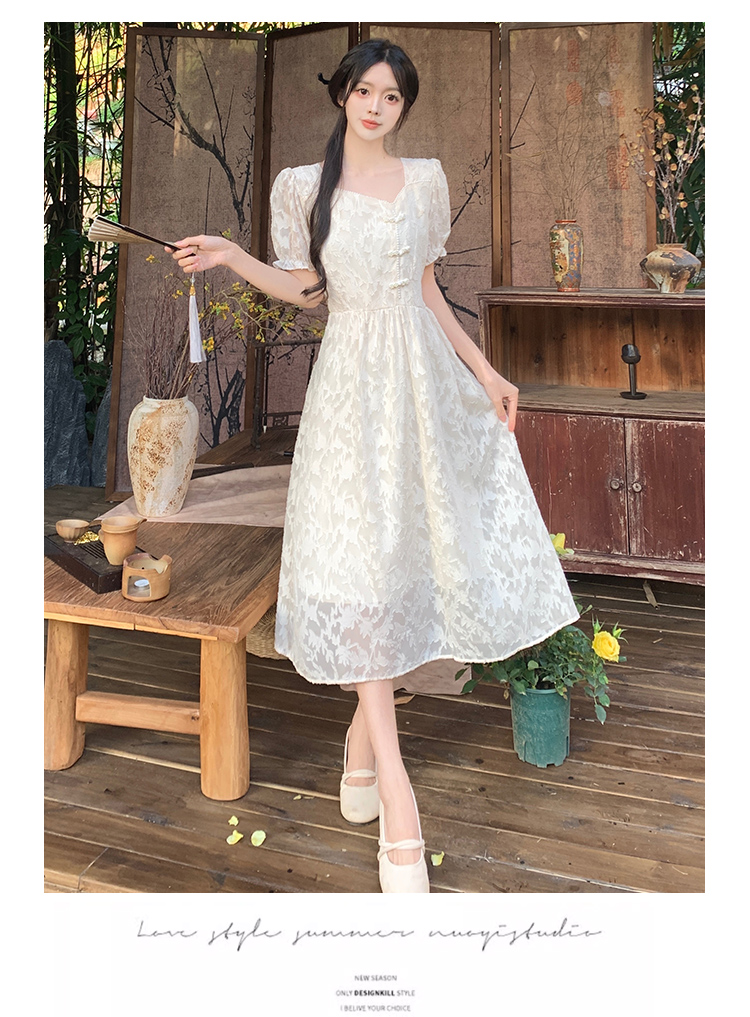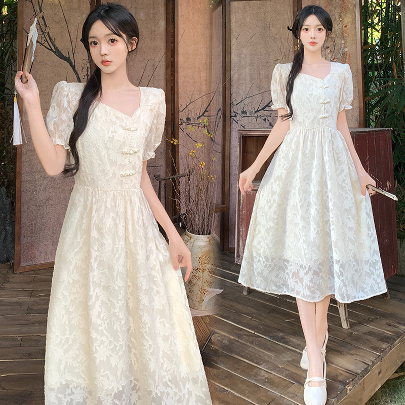 MY3014# 大码女装夏装国风新中式复古盘扣显瘦短袖雪纺泡泡袖连衣裙女裝貨源服裝批發