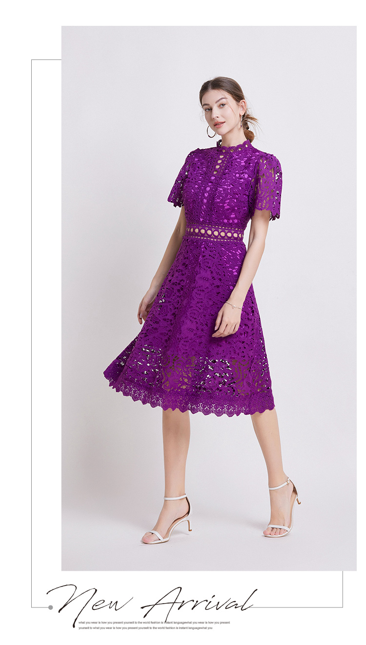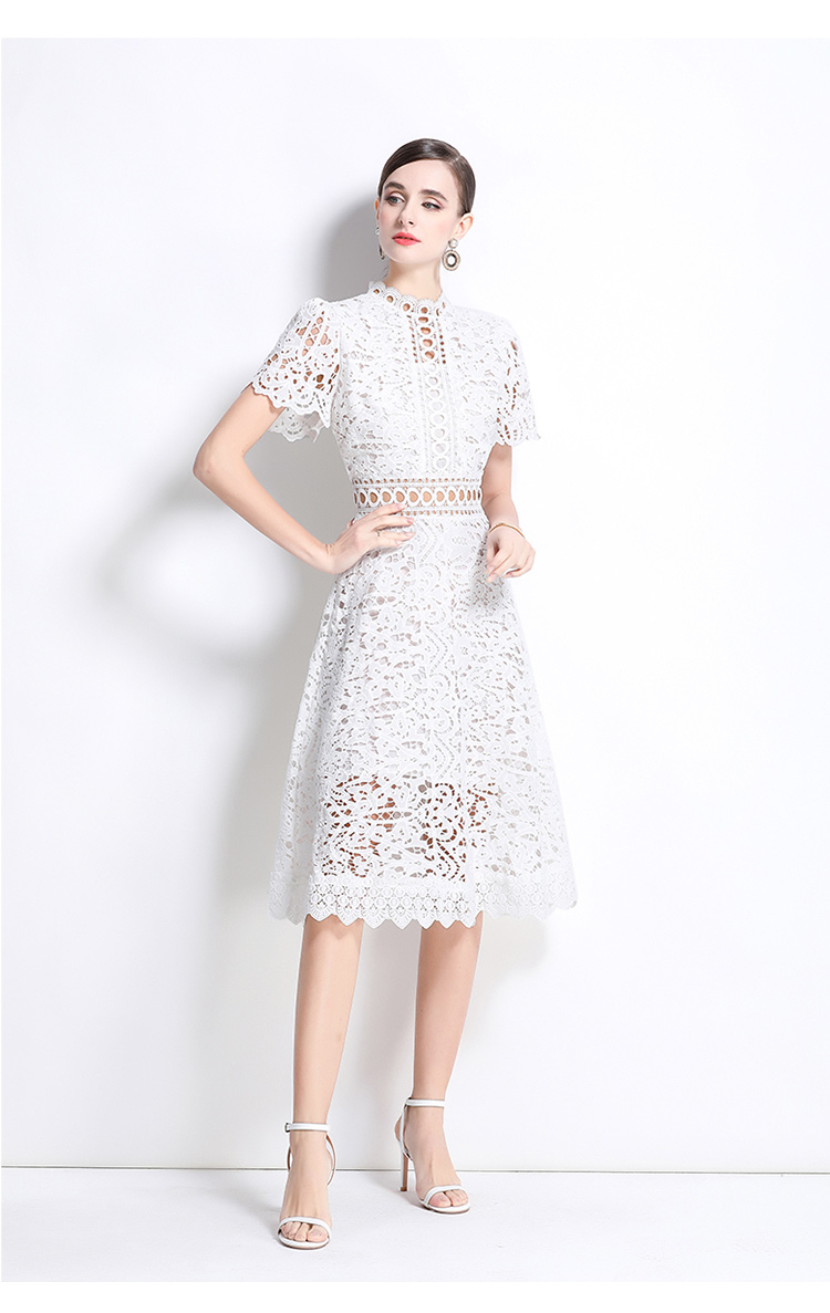 MY6637# 法式名媛春夏新品短袖时尚收腰镂空设计连衣裙女裝貨源服裝批發