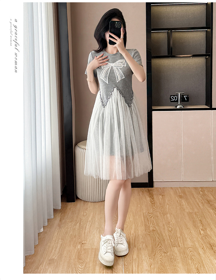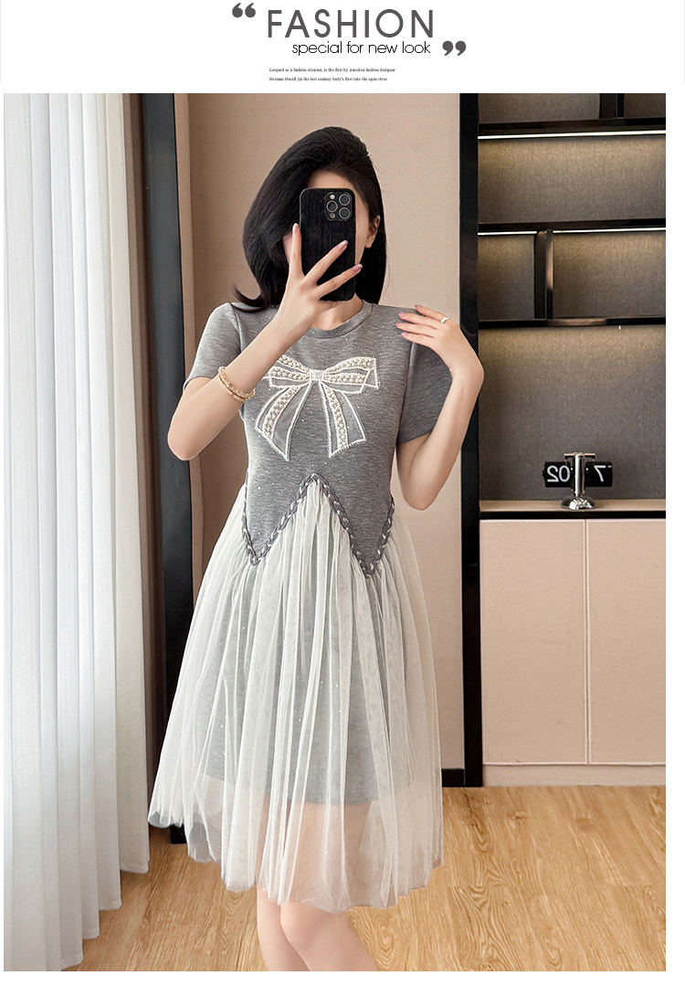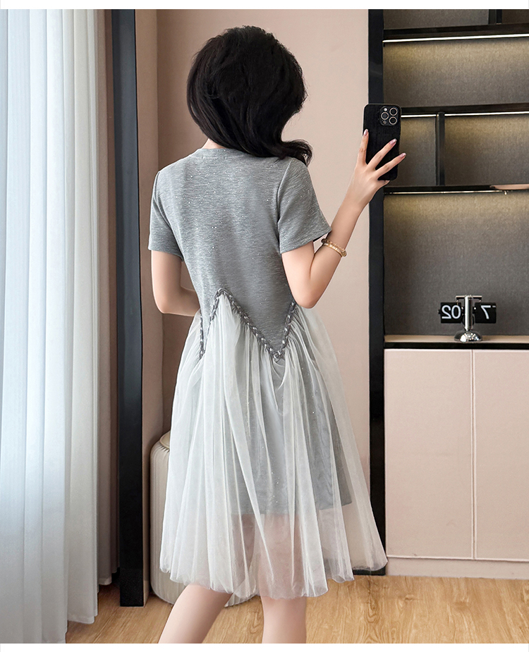 MY6657# 法式高级感网纱拼接连衣裙新款气质收腰显瘦中长款裙子女裝貨源服裝批發