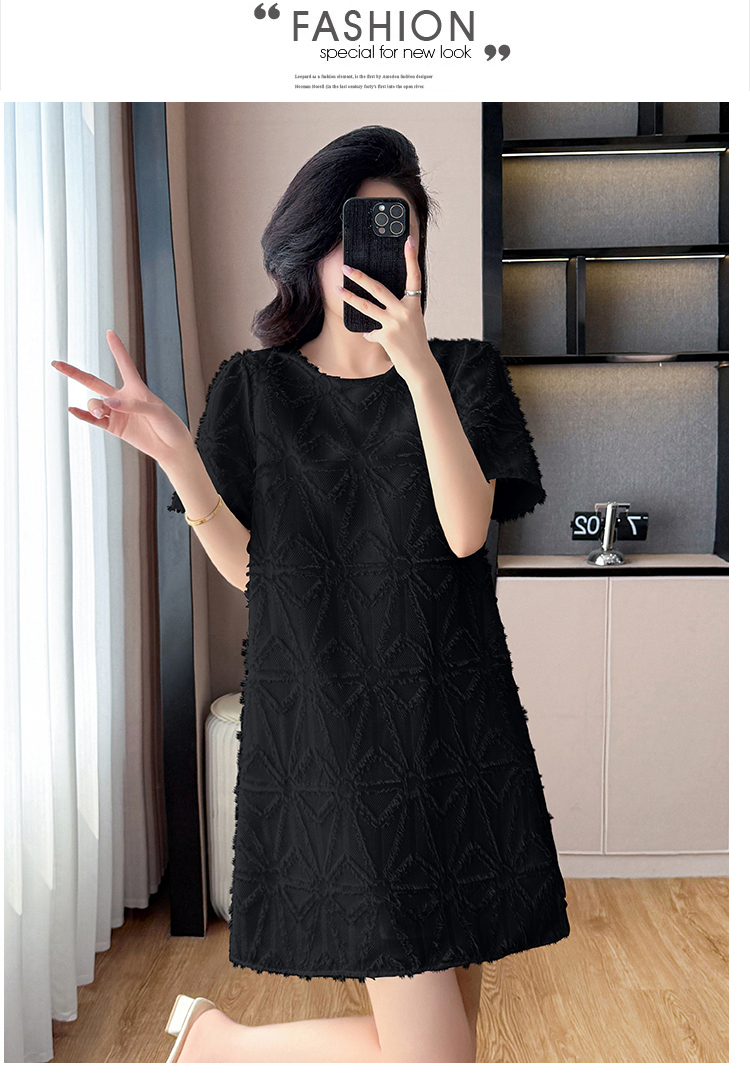 MY6659# 大码夏季新款宽松气质连衣裙胖mm显瘦高级感法式减龄流苏短袖裙子女裝貨源服裝批發