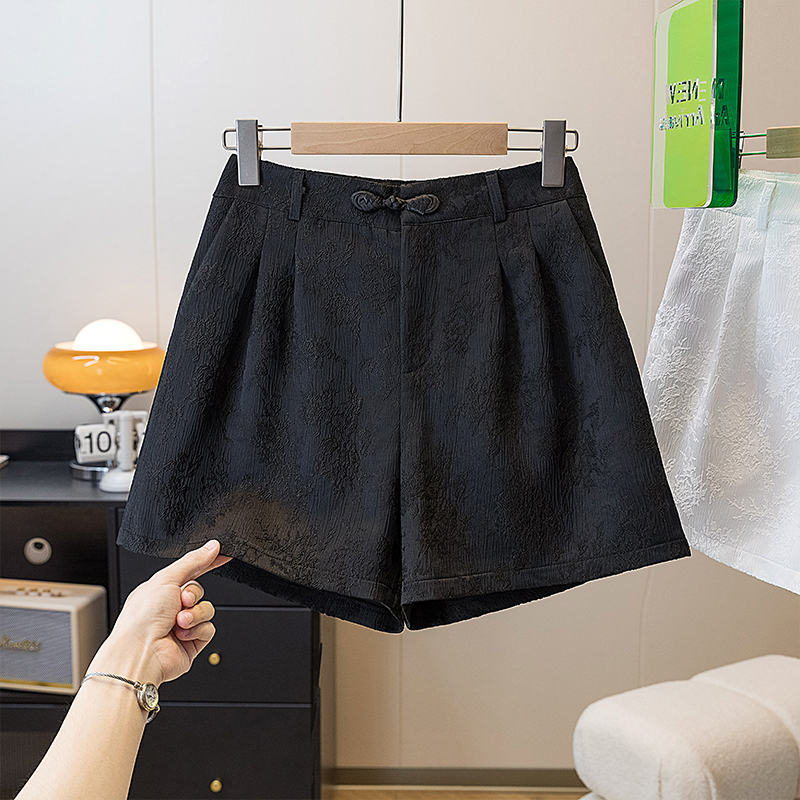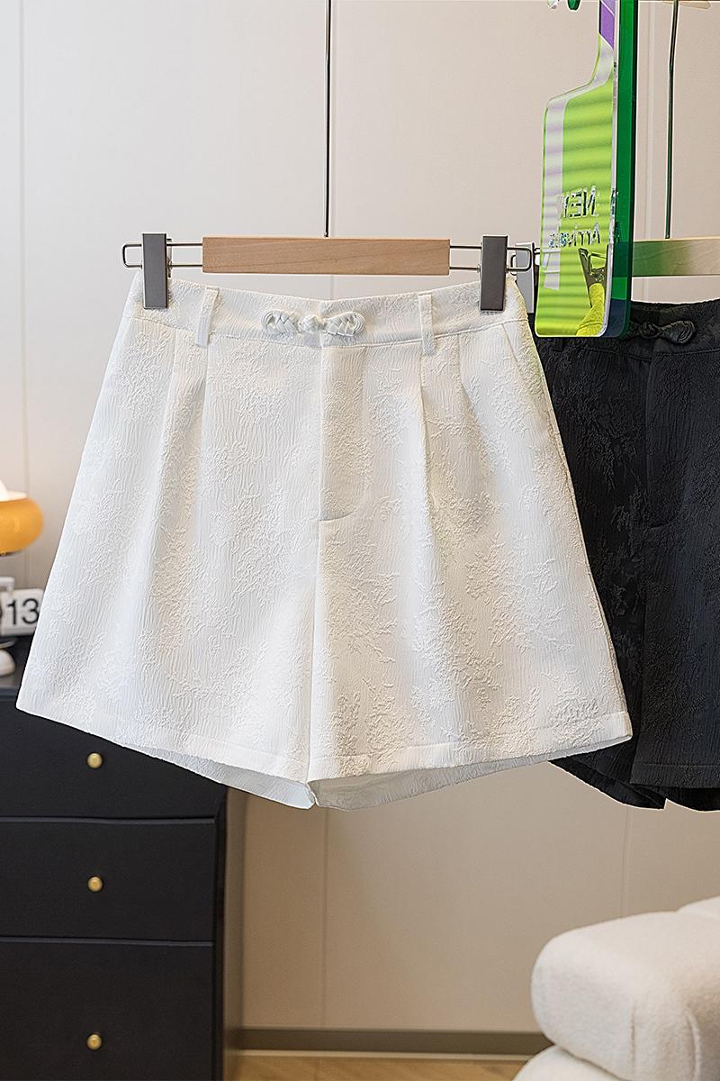 MY6679# 大码新中式提花盘扣短裤女夏高腰显瘦外穿A字休闲国风阔腿裤女裝貨源服裝批發