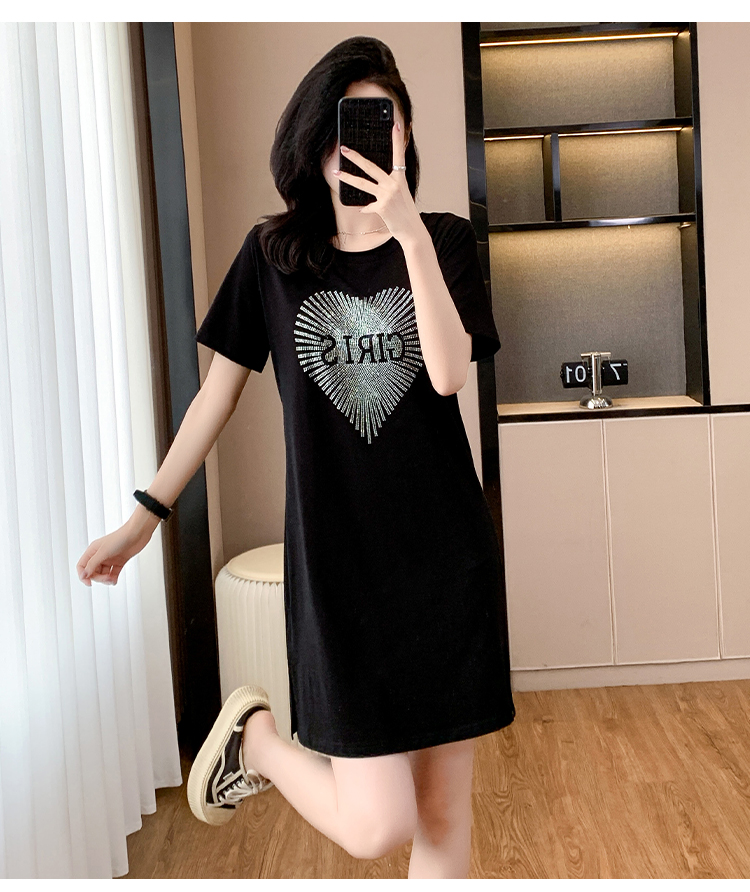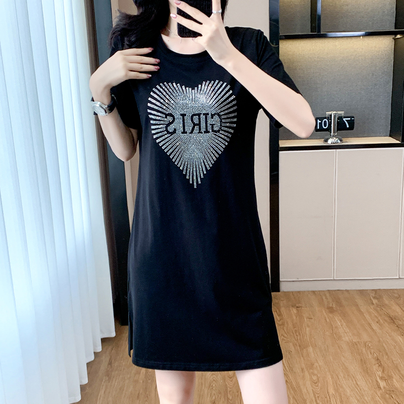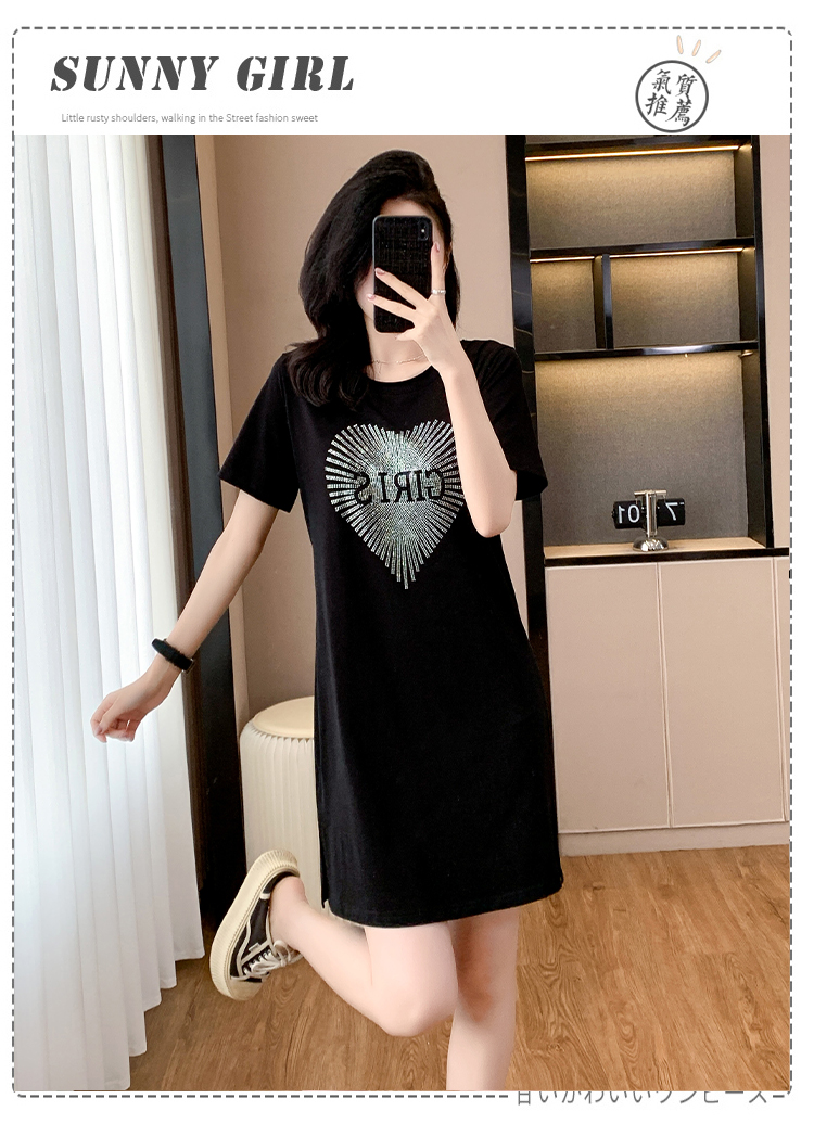 MY6718# 夏季新款休闲大码女装连衣裙烫钻遮肚子显瘦T恤裙子女裝貨源服裝批發