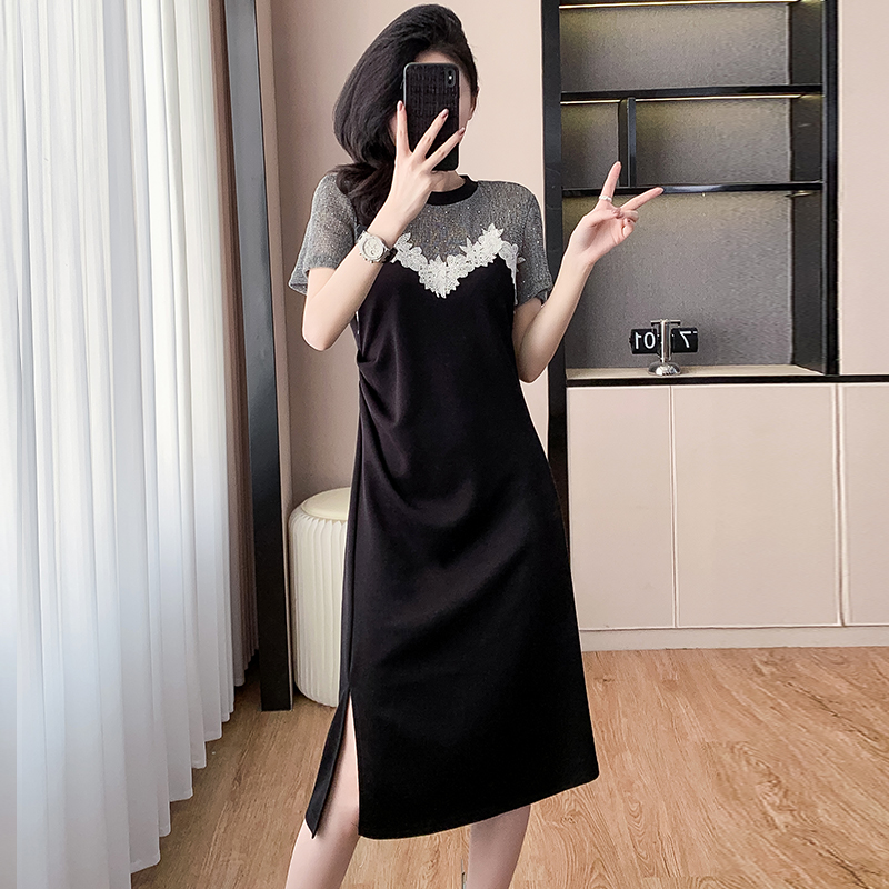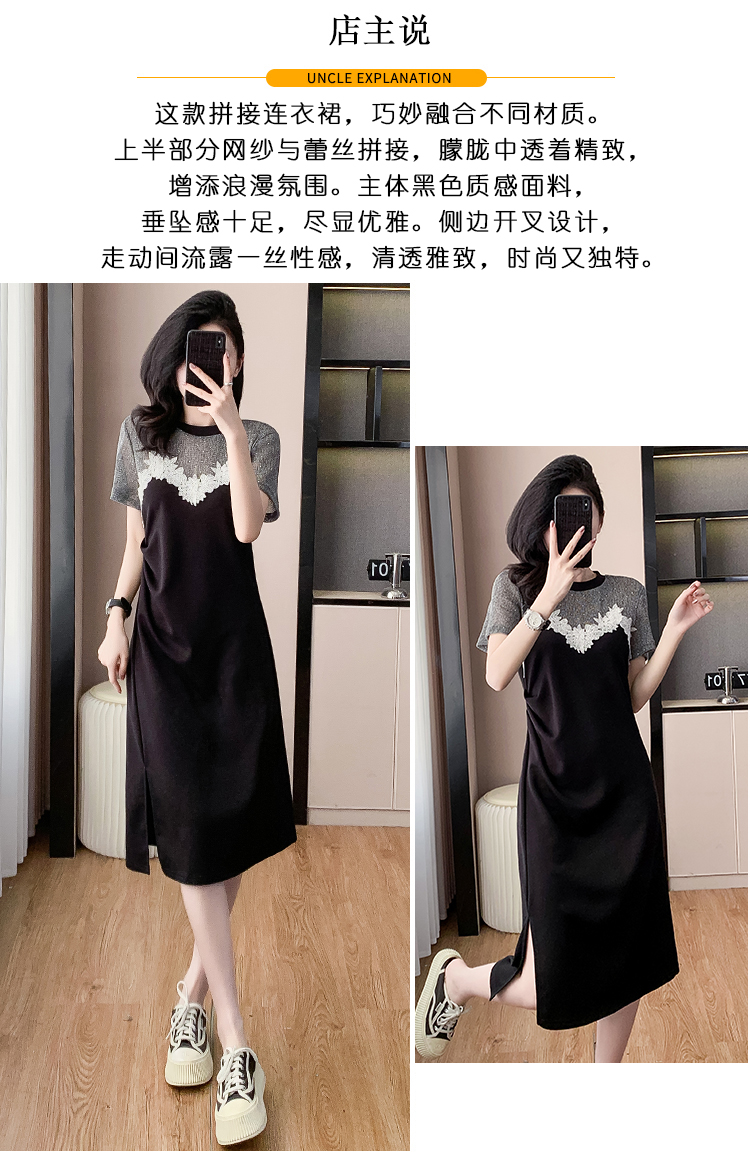 MY6735# 设计感洋气减龄拼接连衣裙夏轻奢气质大码减龄显瘦百搭裙子女裝貨源服裝批發