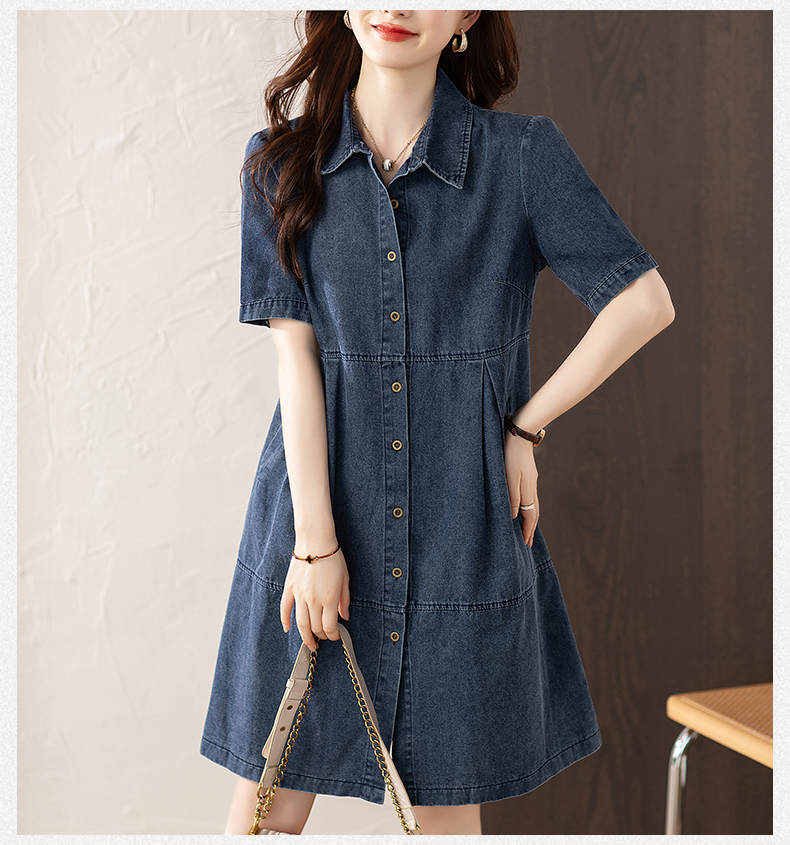 MY6739# 翻领连衣裙女夏新款宽松气质显瘦a字裙女裝貨源服裝批發