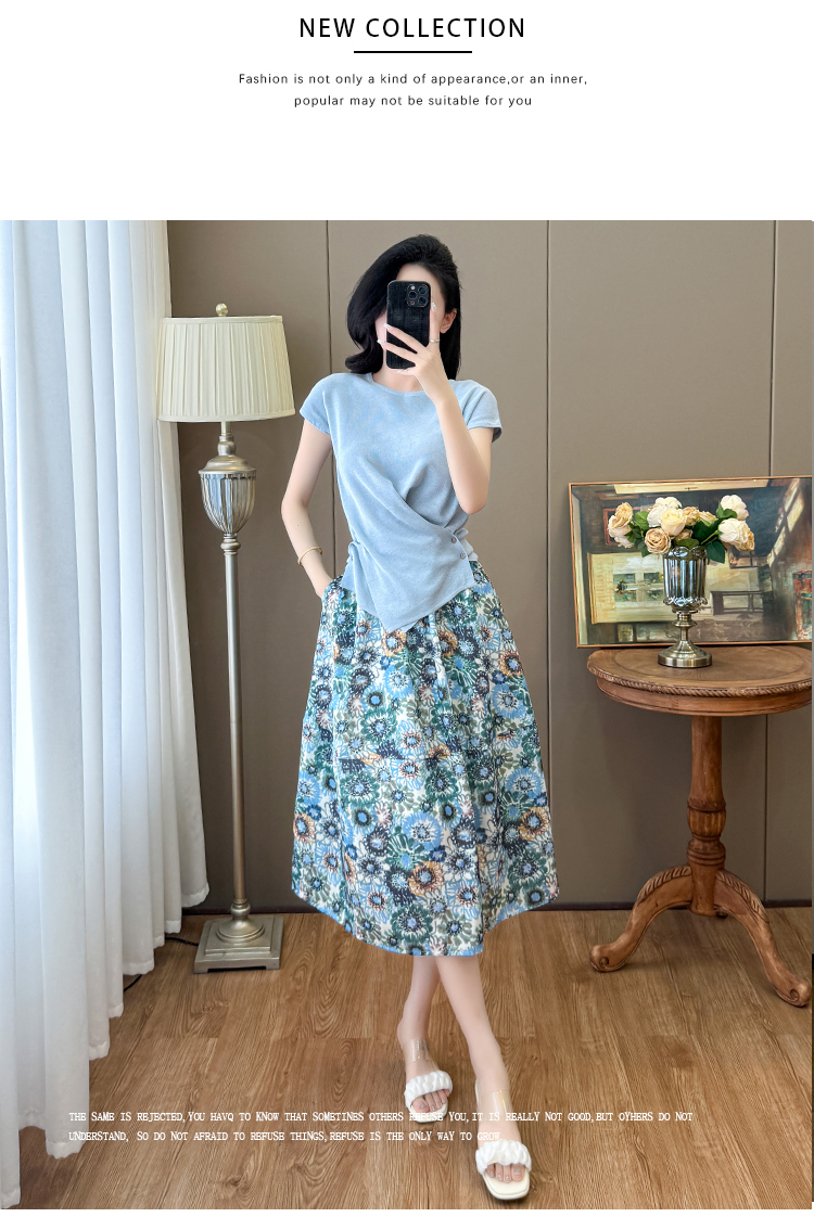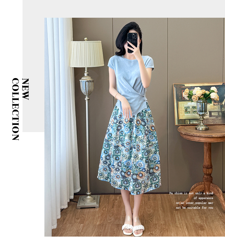 MY6797# 时尚设计感收腰显瘦百搭上衣+减龄碎花半身裙两件套女夏季穿搭女裝貨源服裝批發