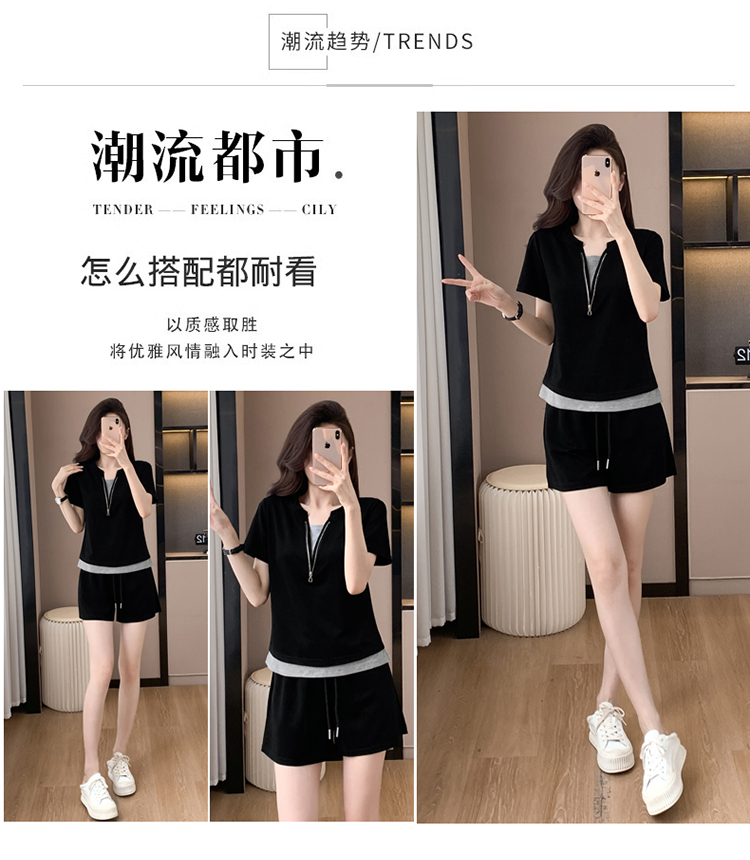 MY6801# 夏季新款休闲遮肉显瘦洋气假两件上衣阔腿短裤两件套女裝貨源服裝批發