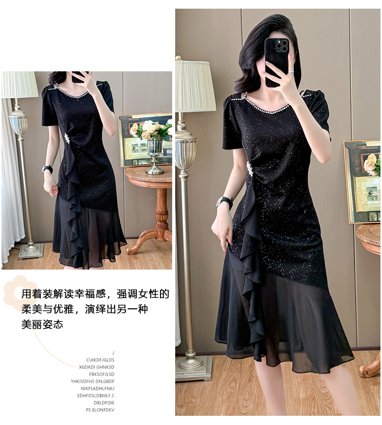 MY6833# 洋气轻奢雪纺拼接连衣裙夏季大码时尚收腰显瘦裙子女裝貨源服裝批發