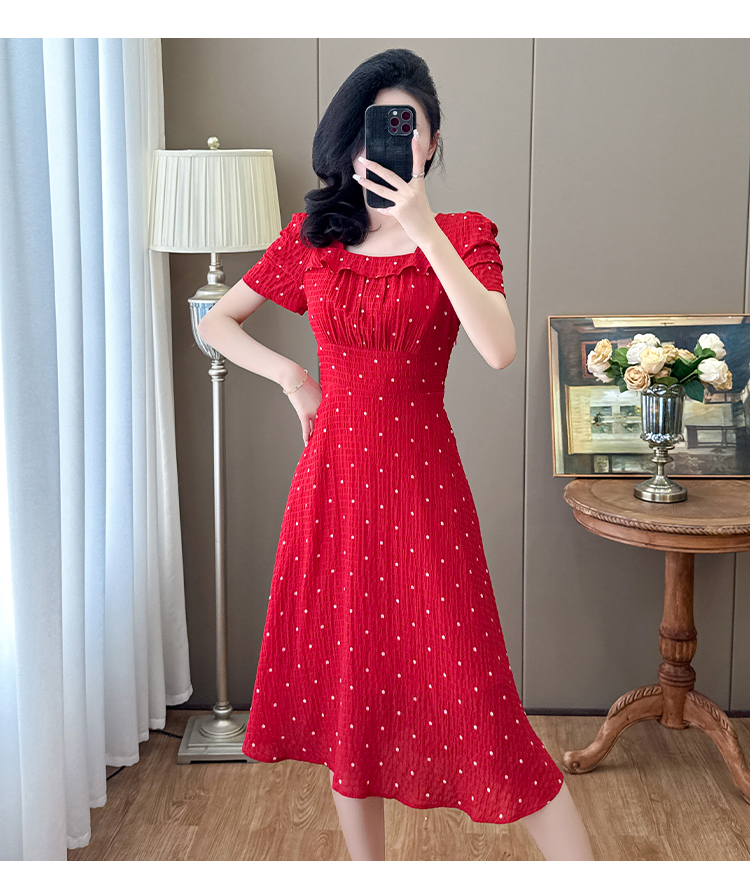 MY6835# 法式方领气质收腰显瘦碎花裙时尚印花复古连衣裙女裝貨源服裝批發