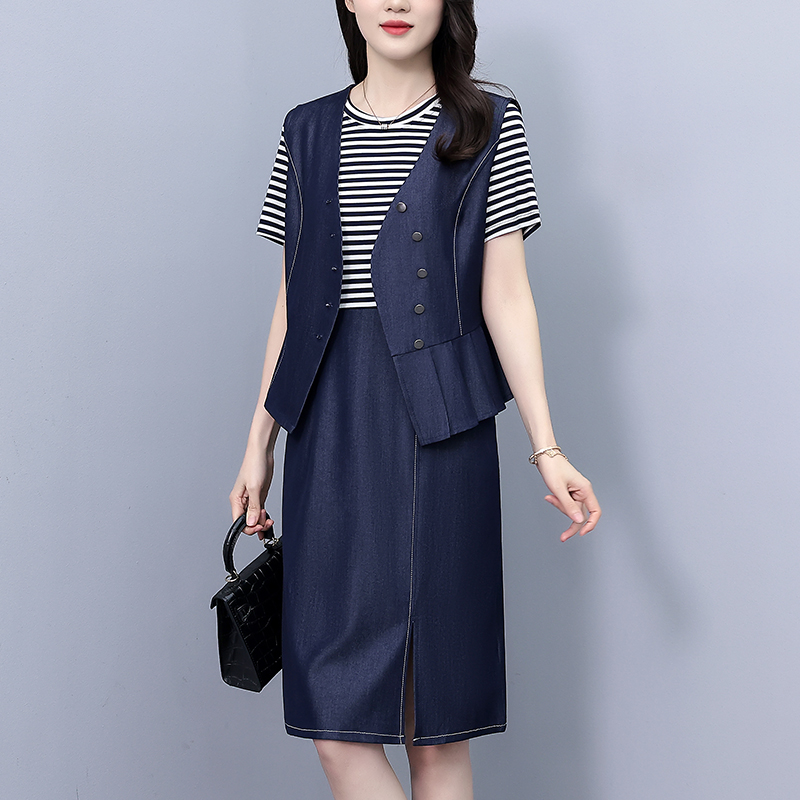 MY6836# 夏季新款时尚气质牛仔马甲两件套女裝貨源服裝批發