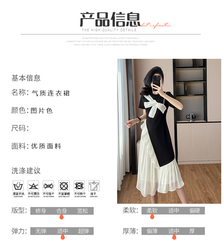 MY6856# 大码女装黑白拼接假两件吊带修身显瘦减龄连衣裙女裝貨源服裝批發