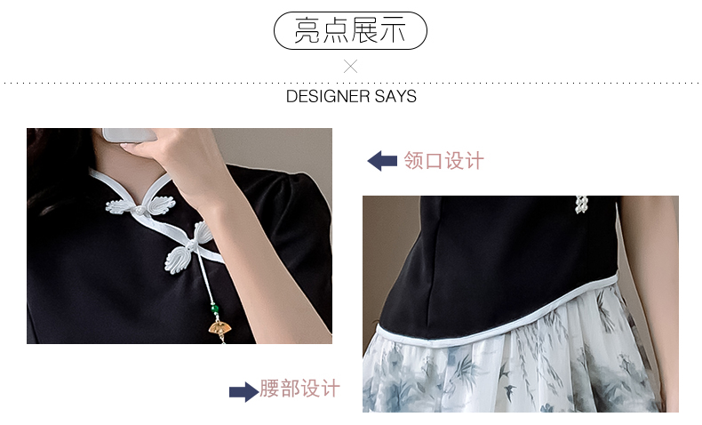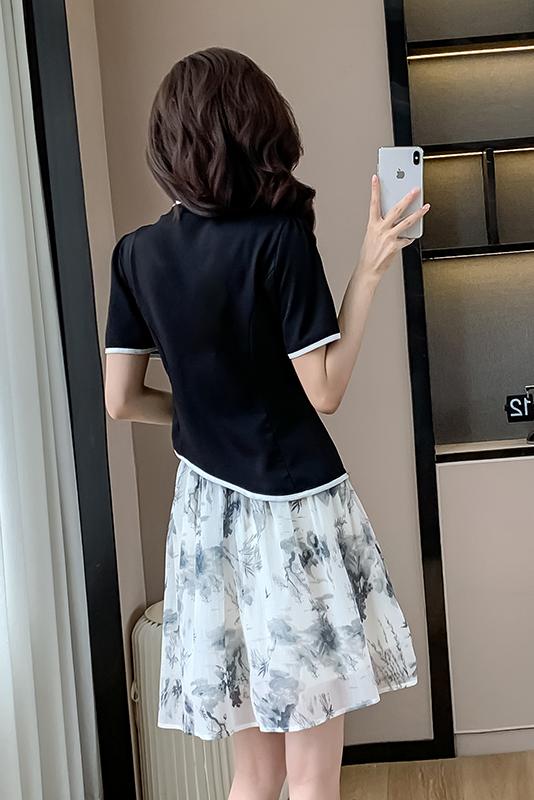 MY6858# 大码女装夏季新中式国风改良旗袍上衣+短裙两件套套装女裝貨源服裝批發
