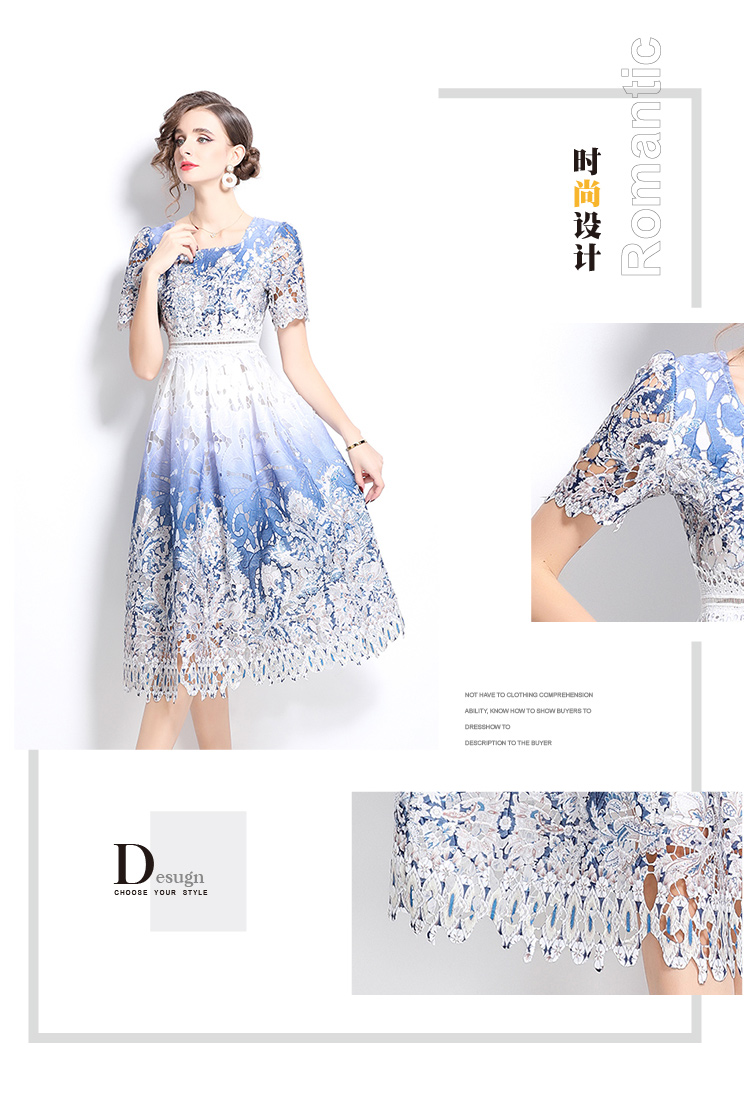 MY6868# 原创轻奢高级感时尚显瘦镂空水溶蕾丝定位中长款连衣裙女裝貨源服裝批發