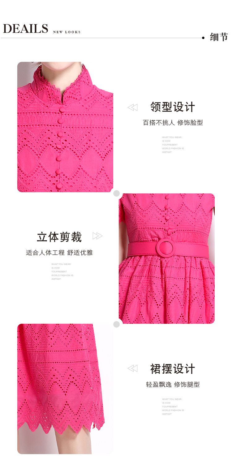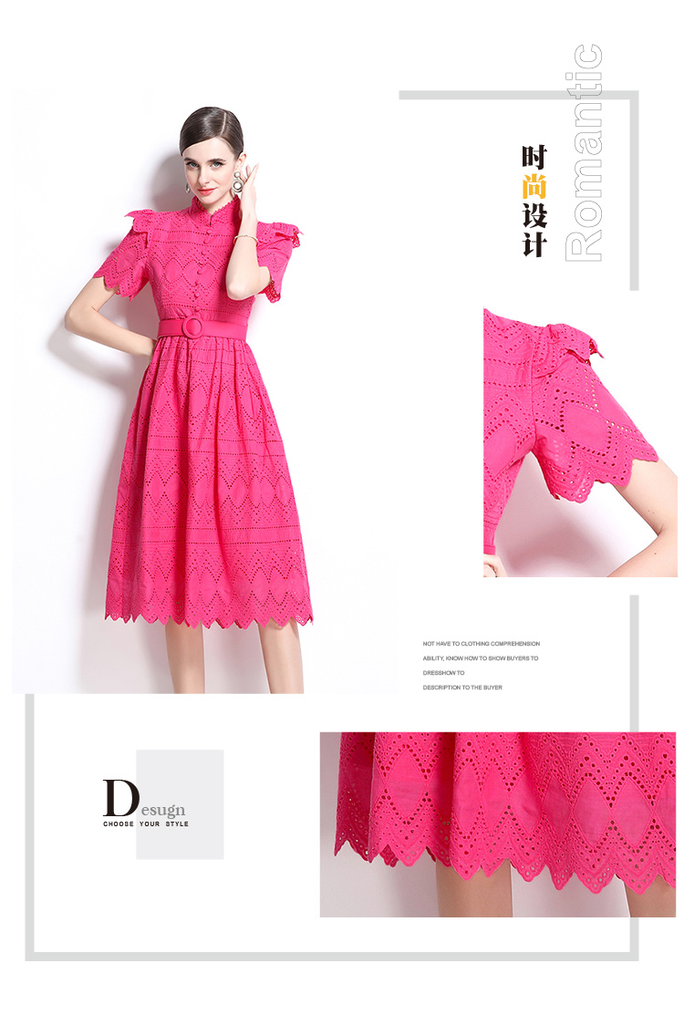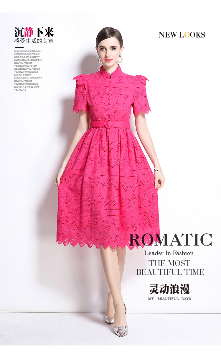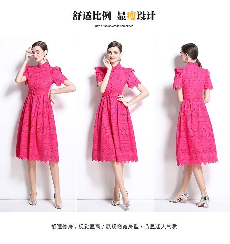 MY6871# 新品优雅拼接收腰短袖连衣裙女裝貨源服裝批發