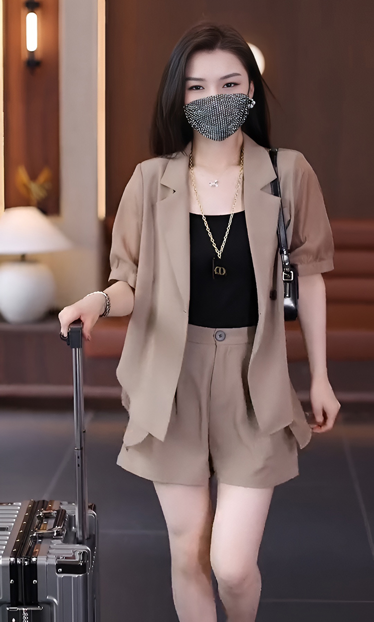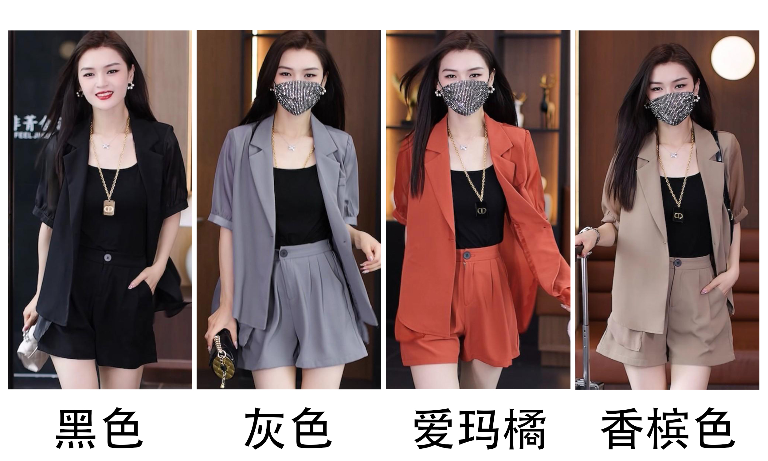 MY6881# 高级感短款西装套装时尚宽松薄款洋气短裤两件套潮女裝貨源服裝批發