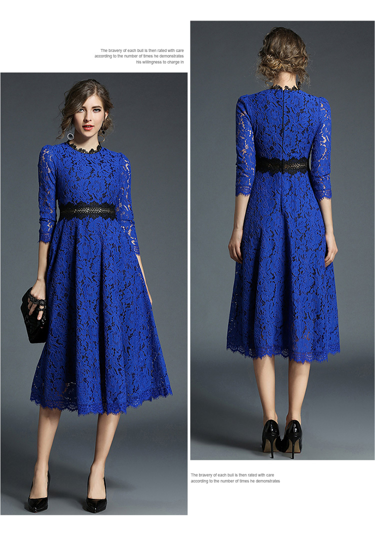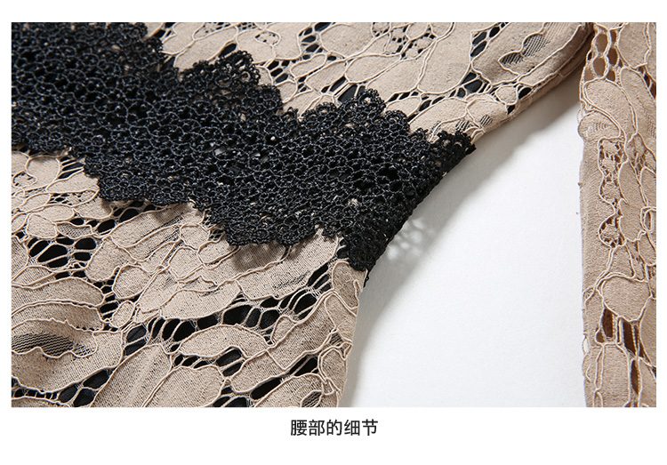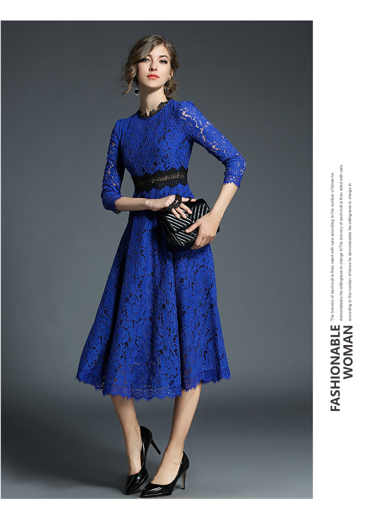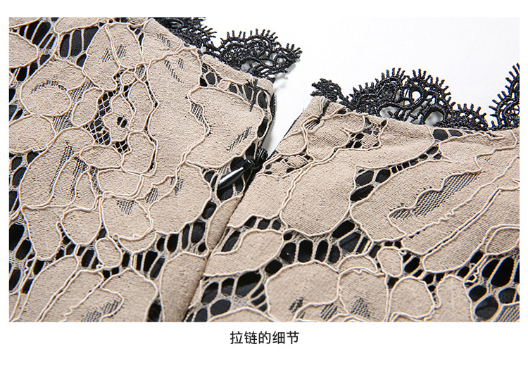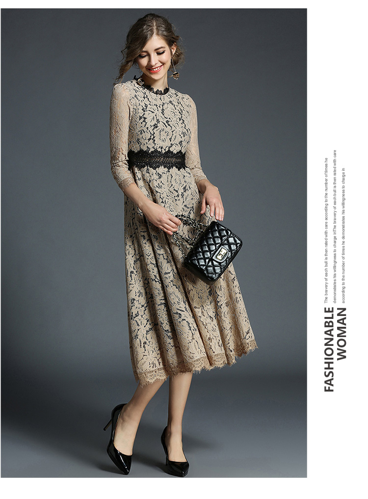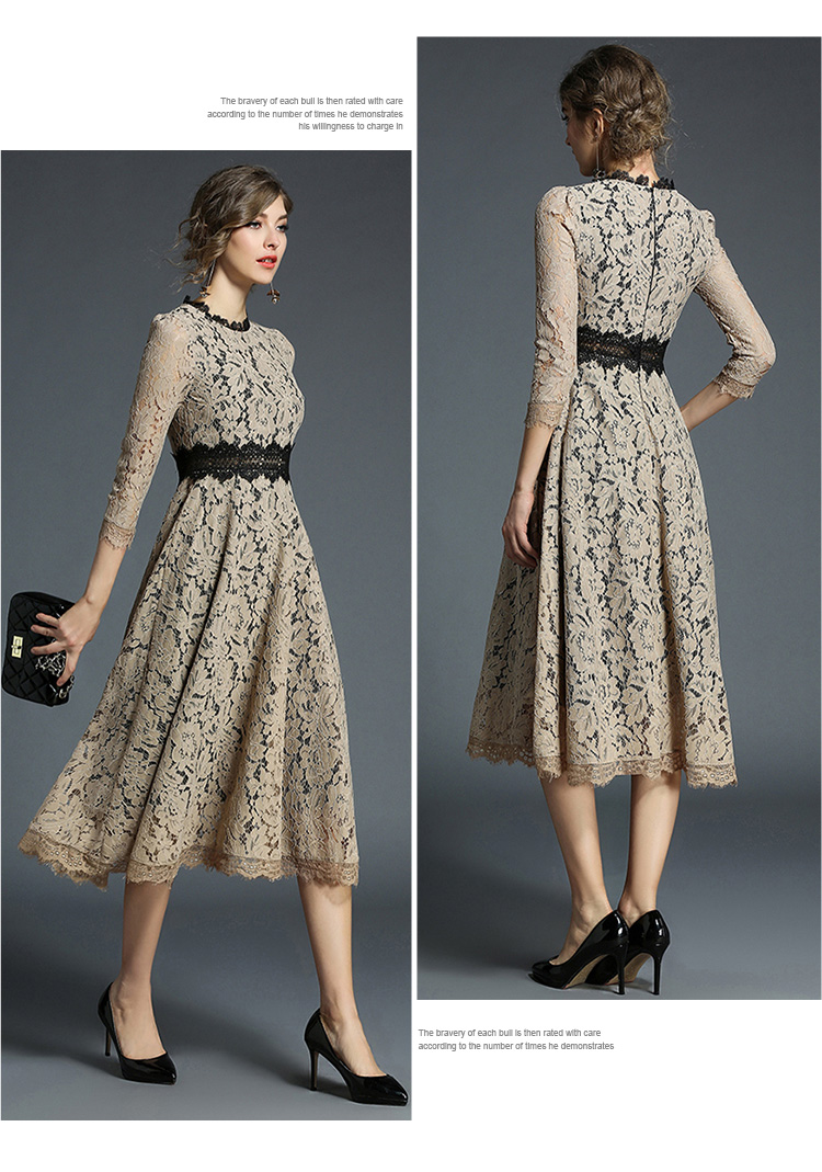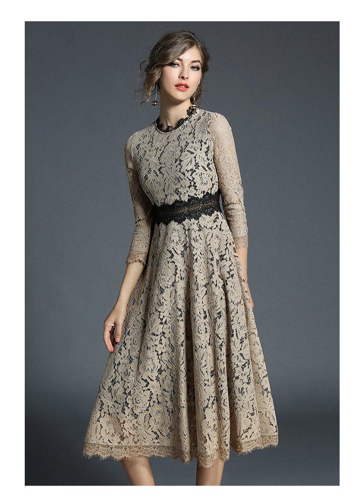 MY12552#春季欧美风钩花镂空拼接蕾丝连衣裙